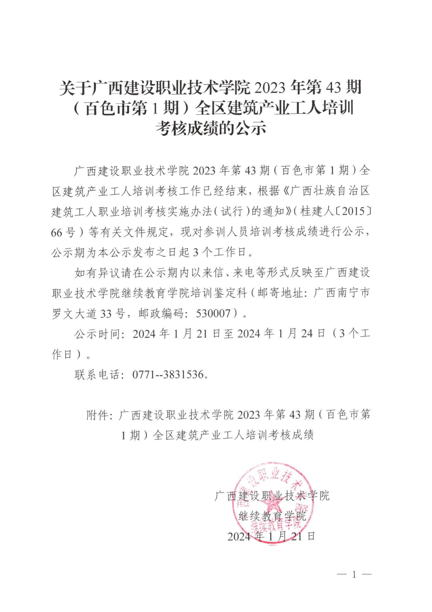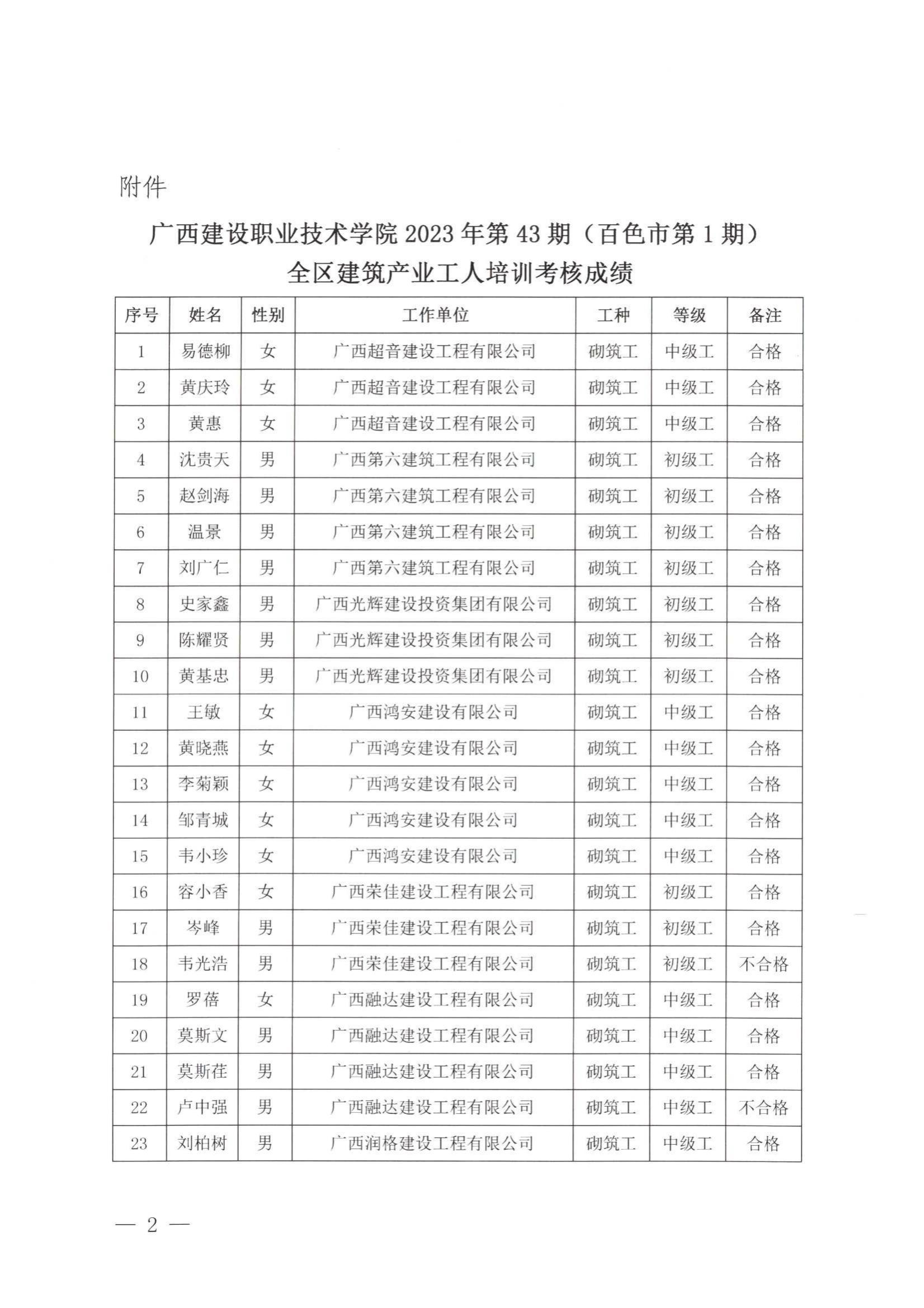 培训信息 当前位置: 首页 >> 培训信息 >> 正文 关于星空·综合(xingkong)官方网站2023年全区星空·综合(xingkong)官方网站产业工人第43期(百色市第1期)培训考核成绩的公示 发布日期:2024-01-20 点击: 附件【关于星空·综合(xingkong)官方网站2023年全区星空·综合(xingkong)官方网站产业工人第43期(百色市第1期)培训考核成绩的公示.pdf】已下载次