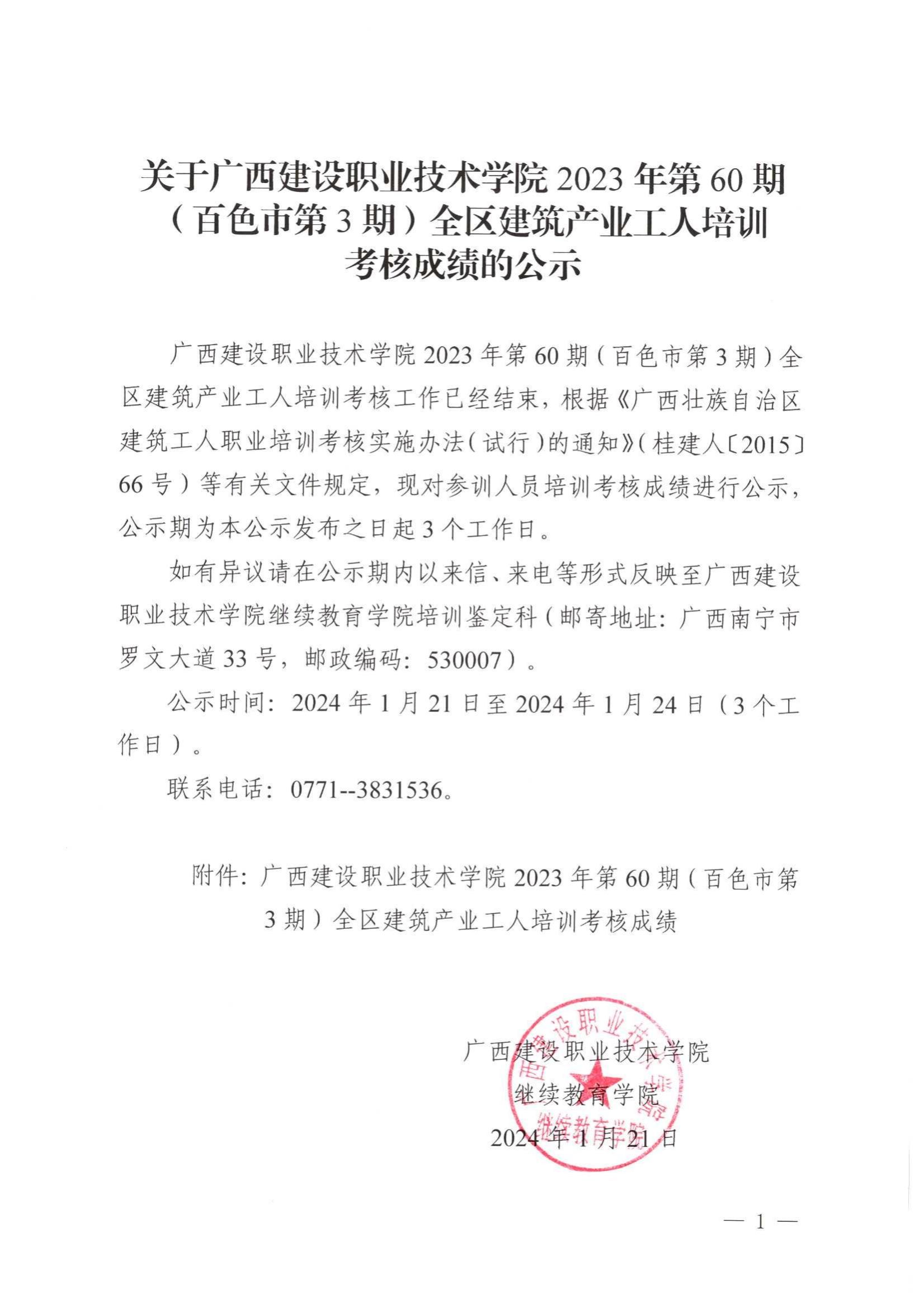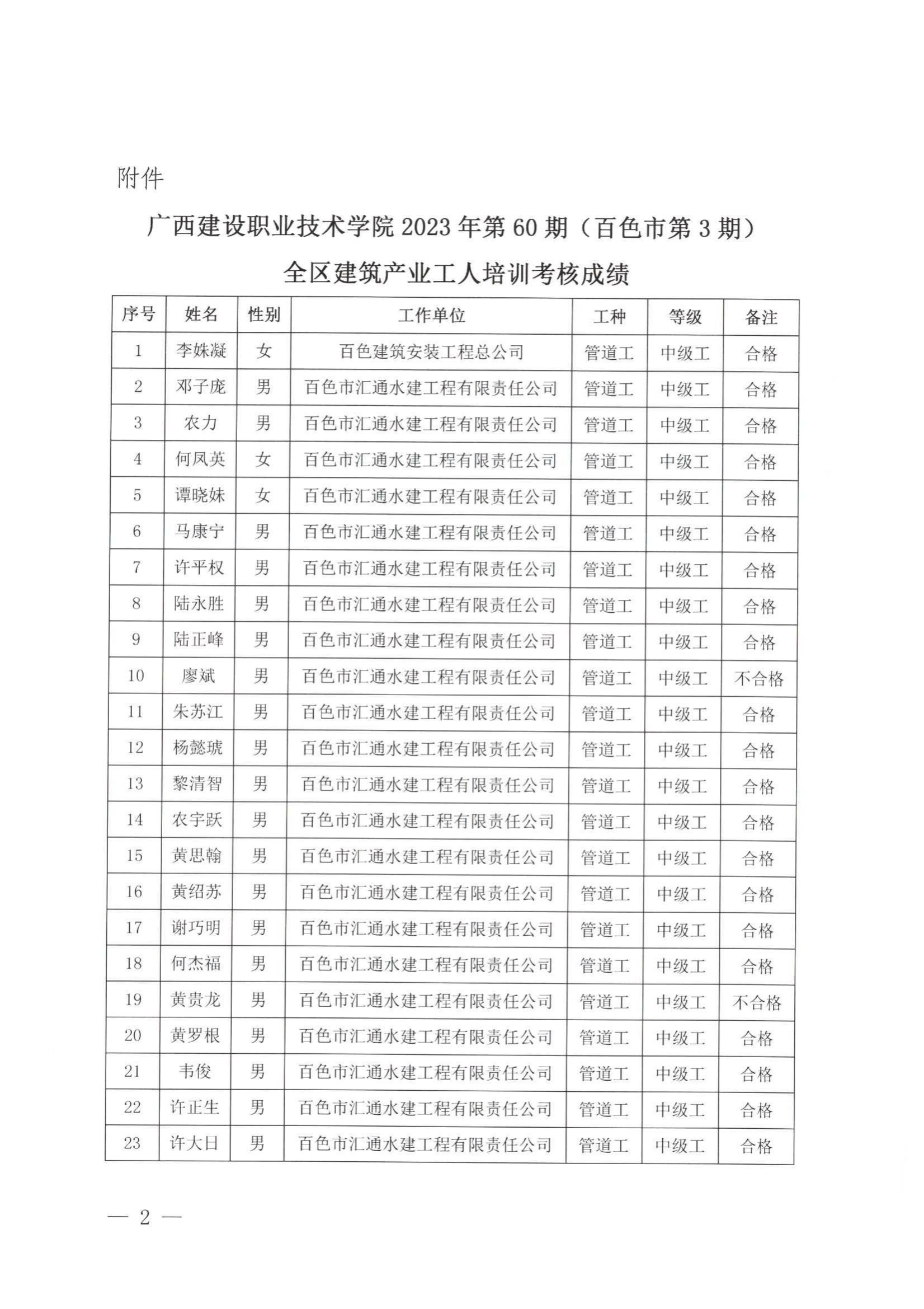 培训信息 当前位置: 首页 >> 培训信息 >> 正文 关于星空·综合(xingkong)官方网站2023年全区星空·综合(xingkong)官方网站产业工人第60期(百色市第3期)培训考核成绩的公示 发布日期:2024-01-20 点击: 附件【关于星空·综合(xingkong)官方网站2023年全区星空·综合(xingkong)官方网站产业工人第60期(百色市第3期)培训考核成绩的公示.pdf】已下载次