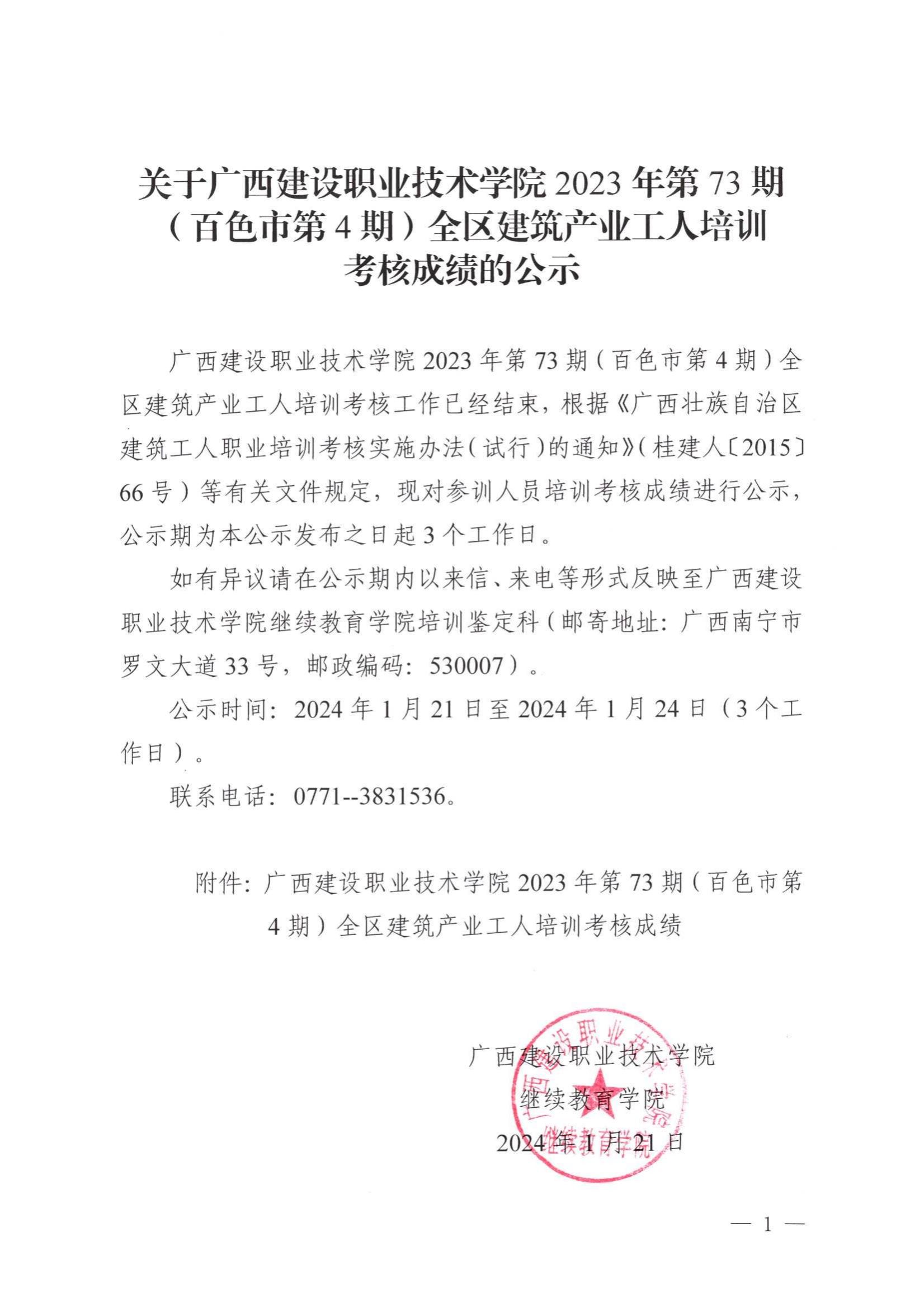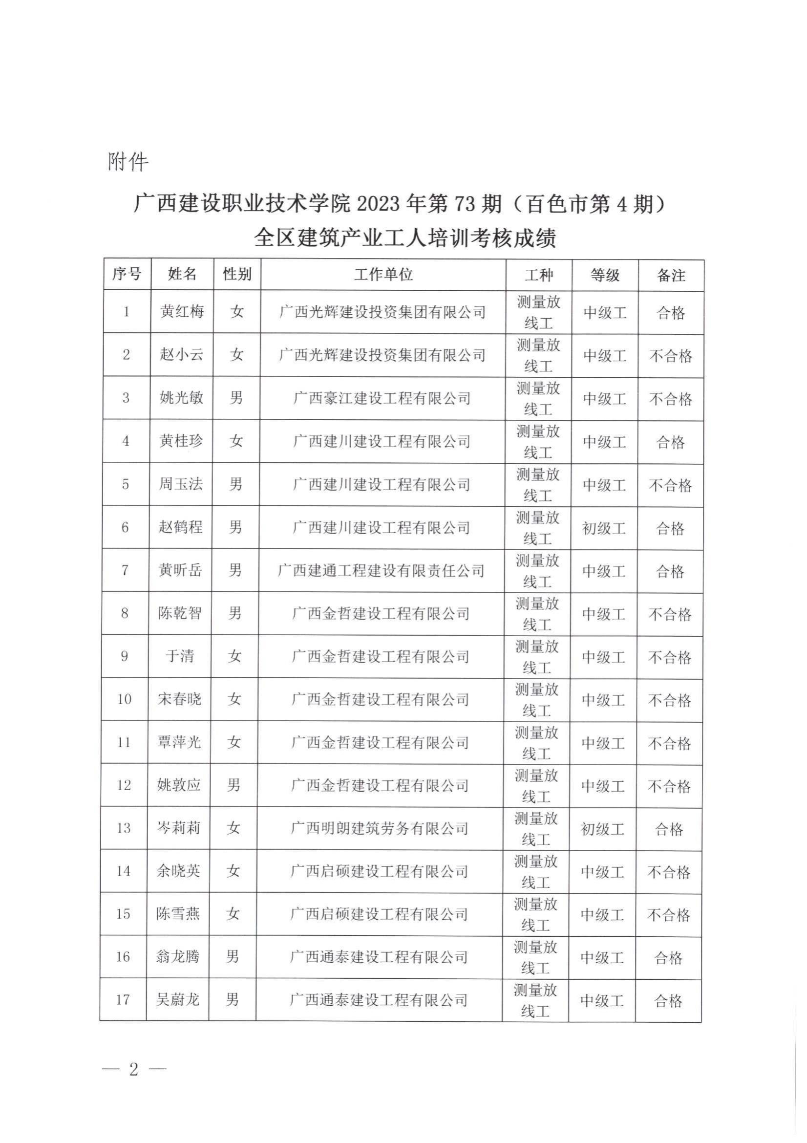 培训信息 当前位置: 首页 >> 培训信息 >> 正文 关于星空·综合(xingkong)官方网站2023年全区星空·综合(xingkong)官方网站产业工人第73期(百色市第4期)培训考核成绩的公示 发布日期:2024-01-20 点击: 附件【关于星空·综合(xingkong)官方网站2023年全区星空·综合(xingkong)官方网站产业工人第73期(百色市第4期)培训考核成绩的公示.pdf】已下载次