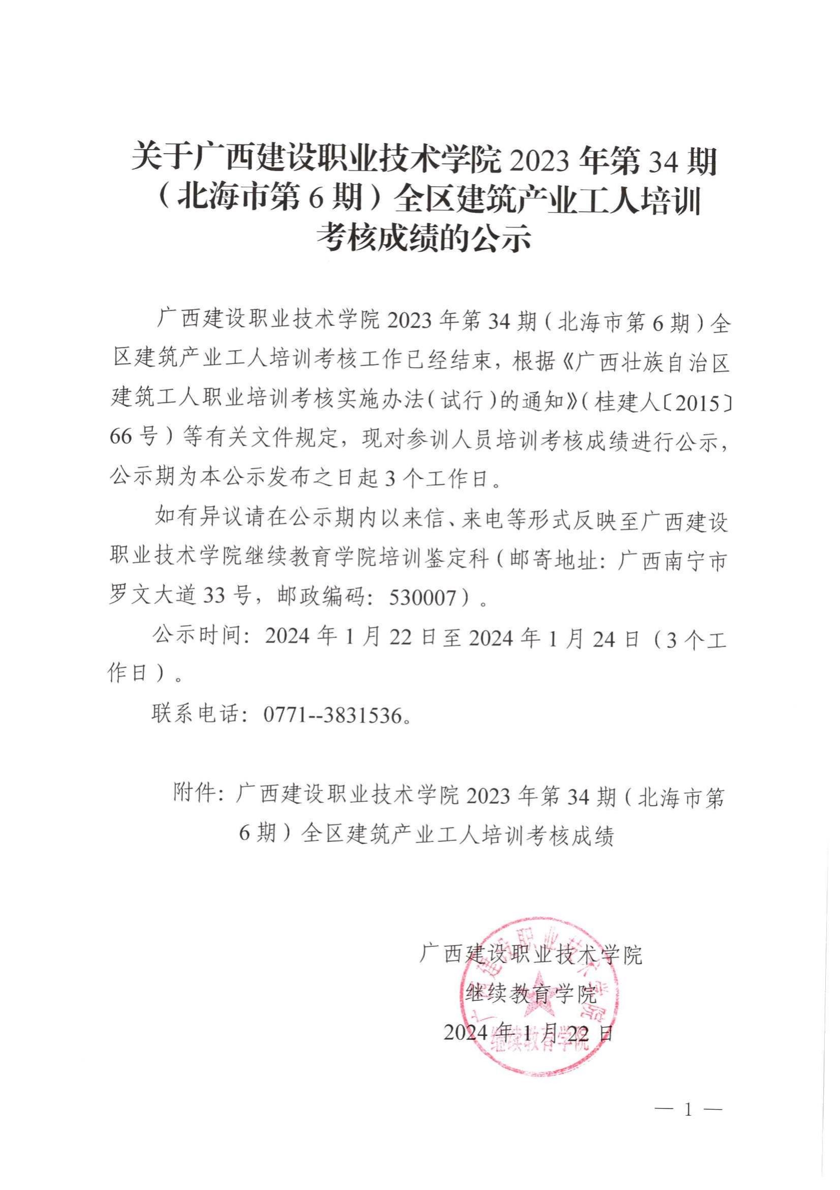 培训信息 当前位置: 首页 >> 培训信息 >> 正文 关于星空·综合(xingkong)官方网站2023年全区星空·综合(xingkong)官方网站产业工人第34期(北海市第6期)培训考核成绩的公示 发布日期:2024-01-23 点击: 附件【关于星空·综合(xingkong)官方网站2023年全区星空·综合(xingkong)官方网站产业工人第34期(北海市第6期)培训考核成绩的公示.pdf】已下载次