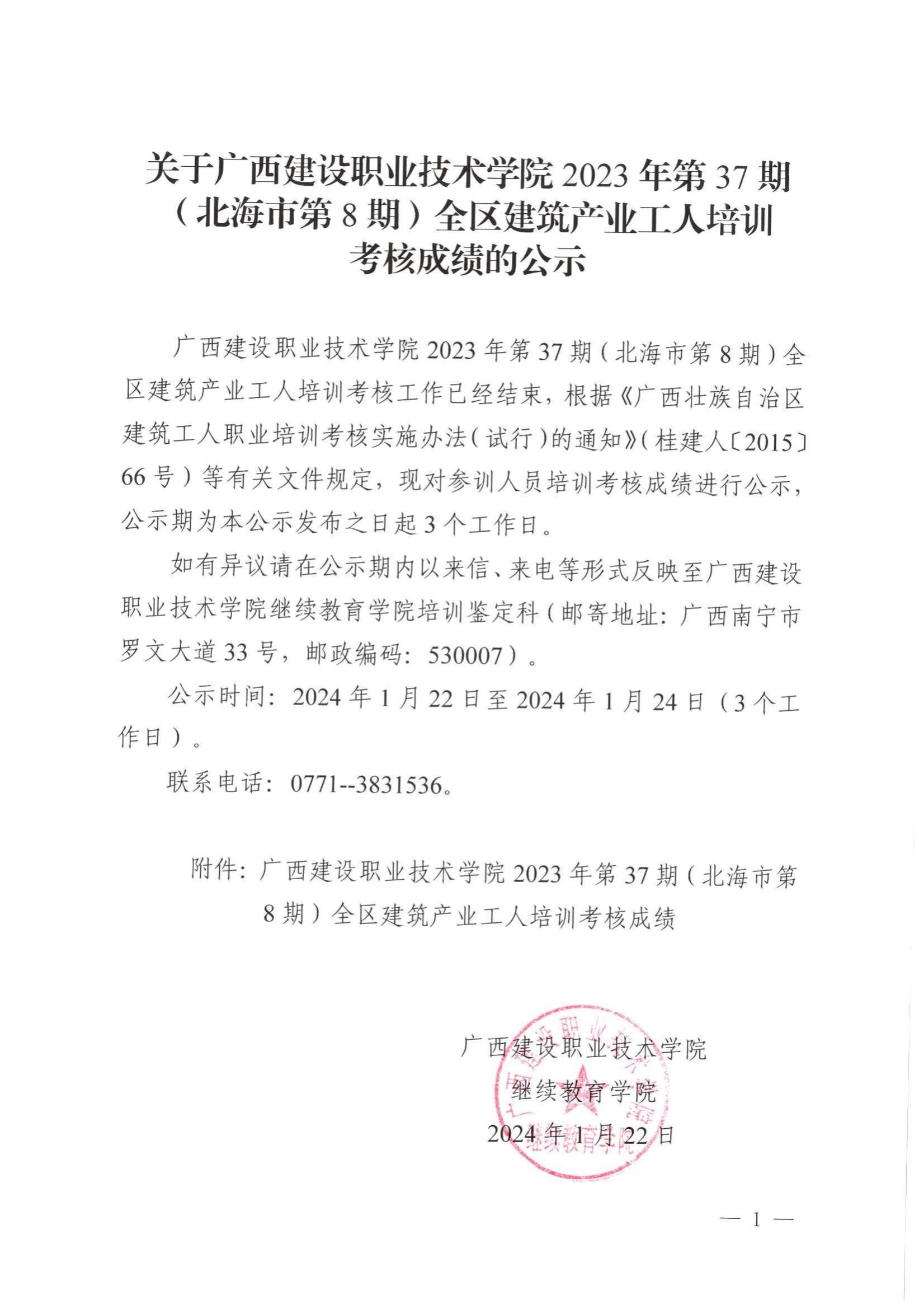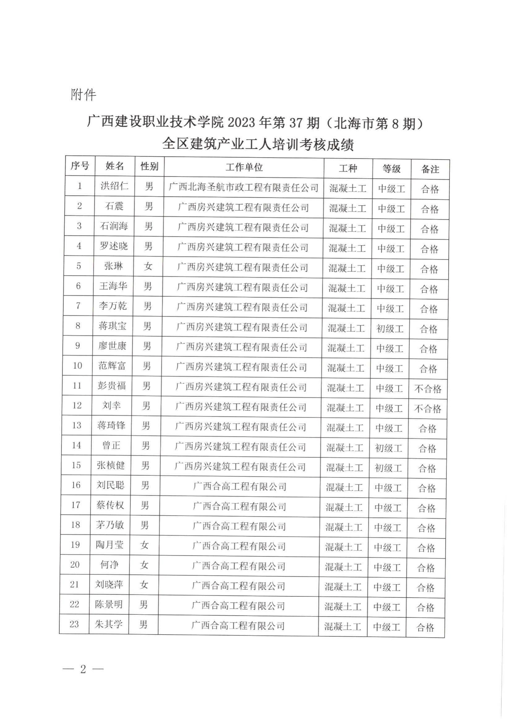 培训信息 当前位置: 首页 >> 培训信息 >> 正文 关于星空·综合(xingkong)官方网站2023年全区星空·综合(xingkong)官方网站产业工人第37期(北海市第8期)培训考核成绩的公示 发布日期:2024-01-23 点击: 附件【关于星空·综合(xingkong)官方网站2023年全区星空·综合(xingkong)官方网站产业工人第37期(北海市第8期)培训考核成绩的公示.pdf】已下载次