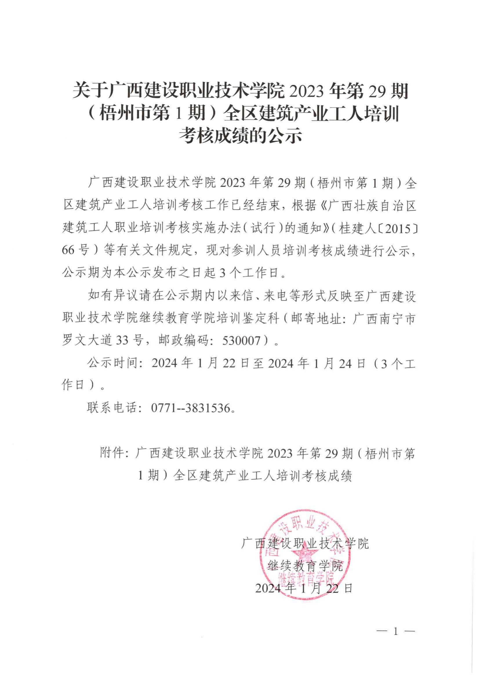 培训信息 当前位置: 首页 >> 培训信息 >> 正文 关于星空·综合(xingkong)官方网站2023年全区星空·综合(xingkong)官方网站产业工人第29期(梧州市第1期)培训考核成绩的公示 发布日期:2024-01-23 点击: 附件【关于星空·综合(xingkong)官方网站2023年全区星空·综合(xingkong)官方网站产业工人第29期(梧州市第1期)培训考核成绩的公示.pdf】已下载次