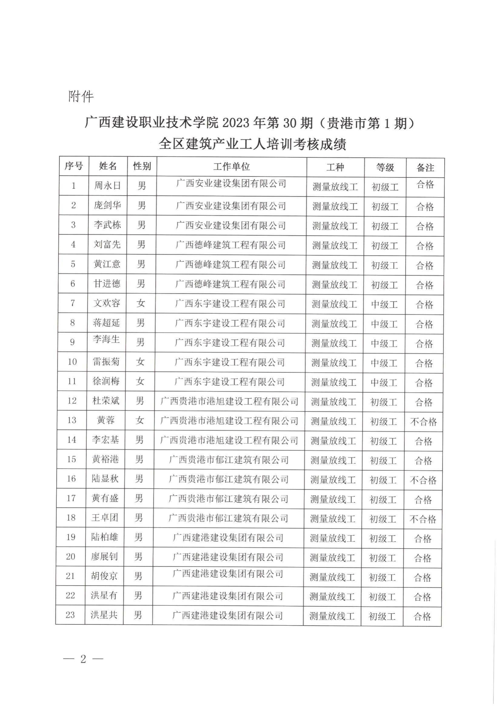 培训信息 当前位置: 首页 >> 培训信息 >> 正文 关于星空·综合(xingkong)官方网站2023年全区星空·综合(xingkong)官方网站产业工人第30期(贵港市第1期)培训考核成绩的公示 发布日期:2024-01-25 点击: 附件【关于星空·综合(xingkong)官方网站2023年全区星空·综合(xingkong)官方网站产业工人第30期(贵港市第1期)培训考核成绩的公示.pdf】已下载次