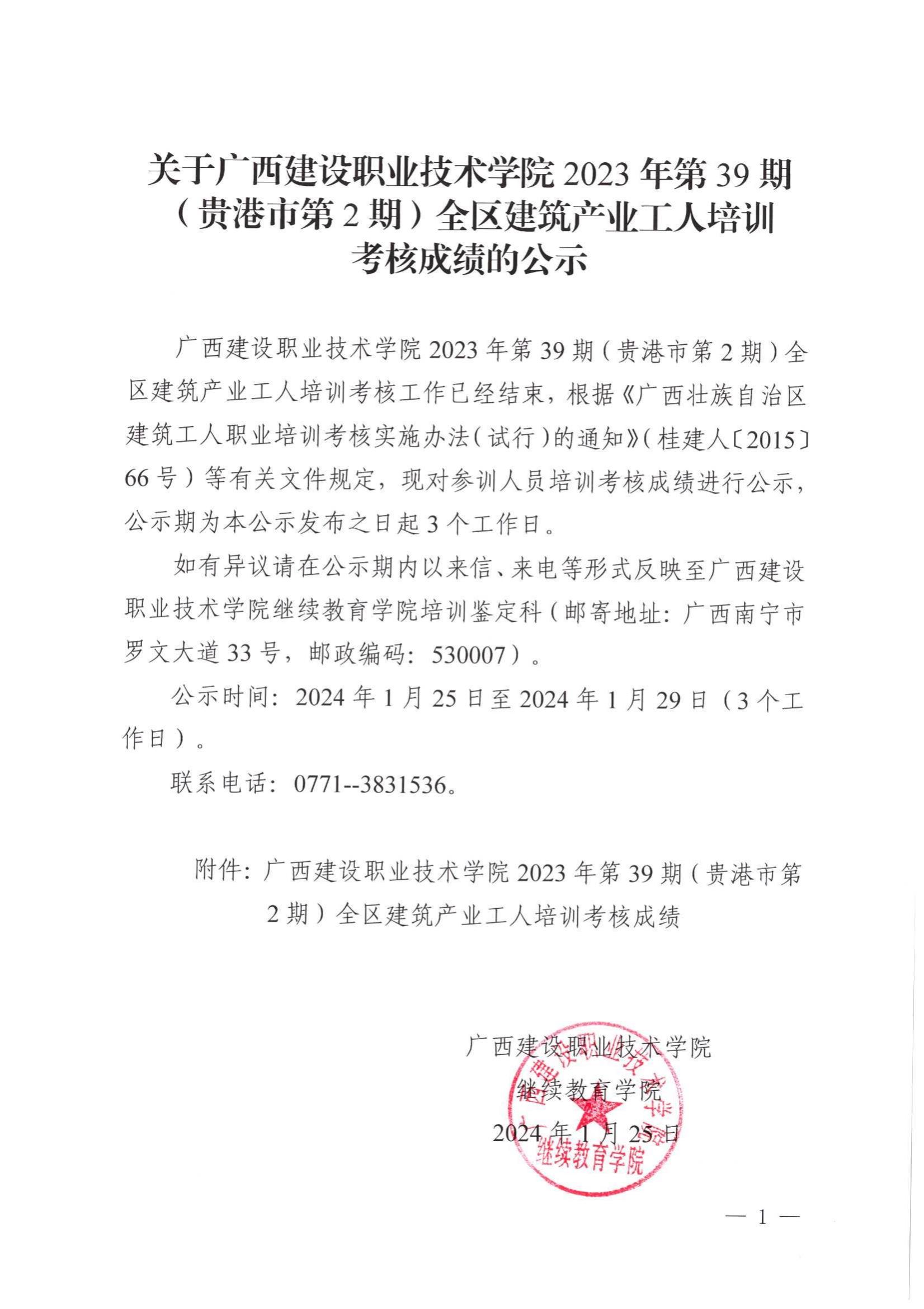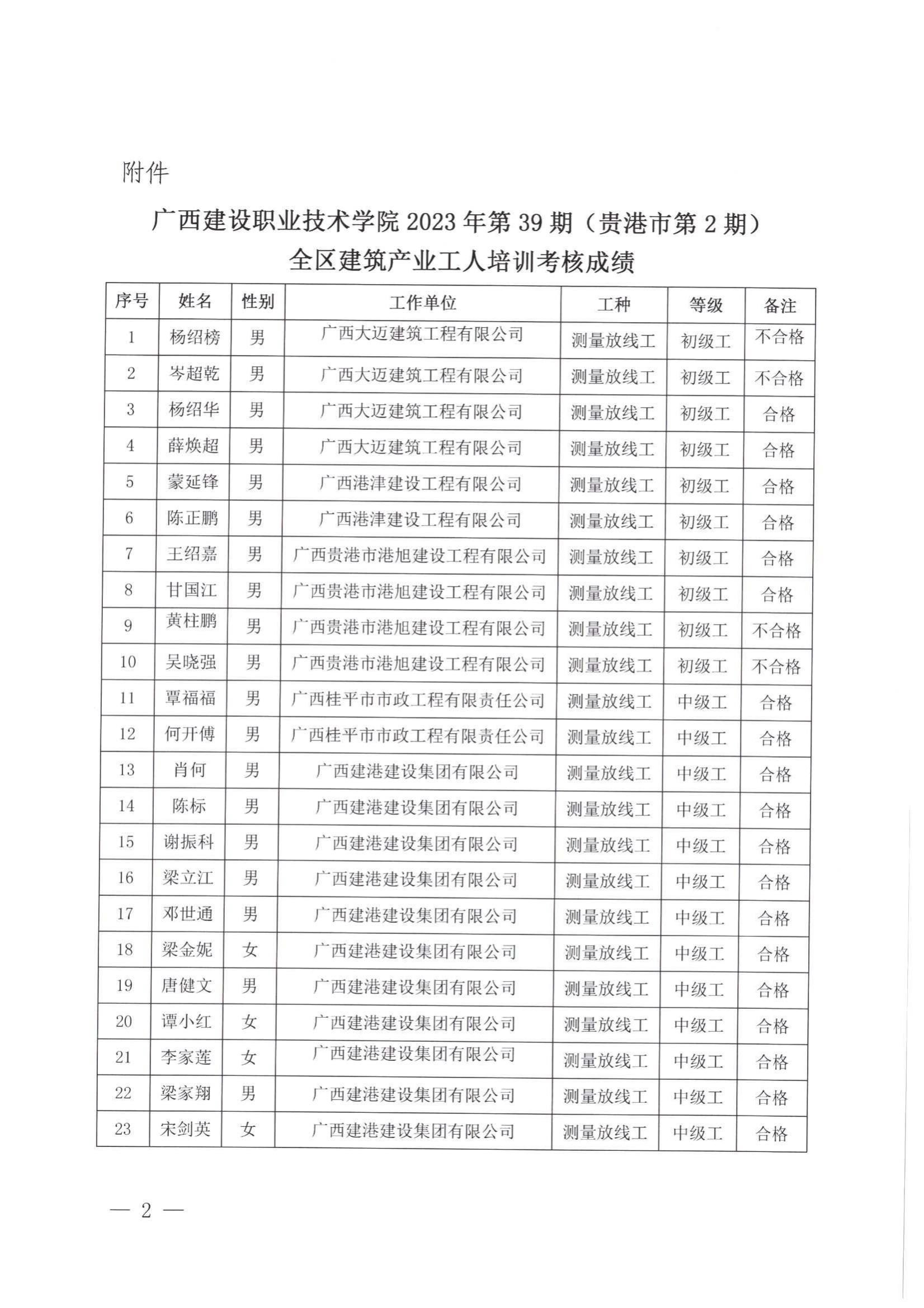 培训信息 当前位置: 首页 >> 培训信息 >> 正文 关于星空·综合(xingkong)官方网站2023年全区星空·综合(xingkong)官方网站产业工人第39期(贵港市第2期)培训考核成绩的公示 发布日期:2024-01-25 点击: 附件【关于星空·综合(xingkong)官方网站2023年全区星空·综合(xingkong)官方网站产业工人第39期(贵港市第2期)培训考核成绩的公示 .pdf】已下载次