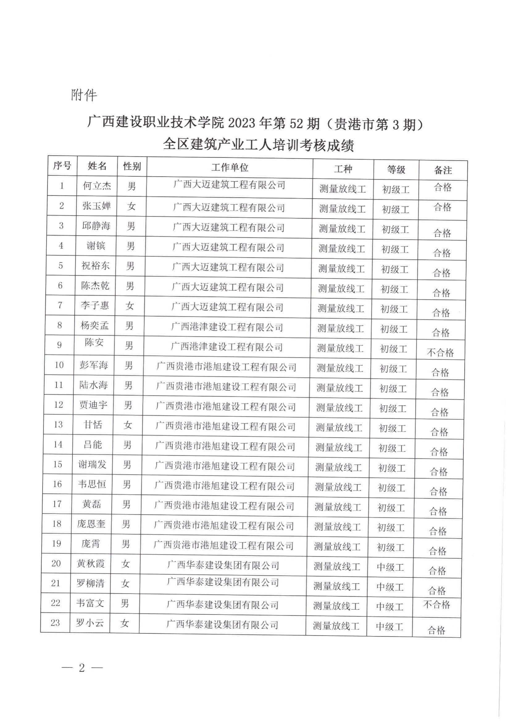 培训信息 当前位置: 首页 >> 培训信息 >> 正文 关于星空·综合(xingkong)官方网站2023年全区星空·综合(xingkong)官方网站产业工人第52期(贵港市第3期)培训考核成绩的公示 发布日期:2024-01-25 点击: 附件【关于星空·综合(xingkong)官方网站2023年全区星空·综合(xingkong)官方网站产业工人第52期(贵港市第3期)培训考核成绩的公示.pdf】已下载次