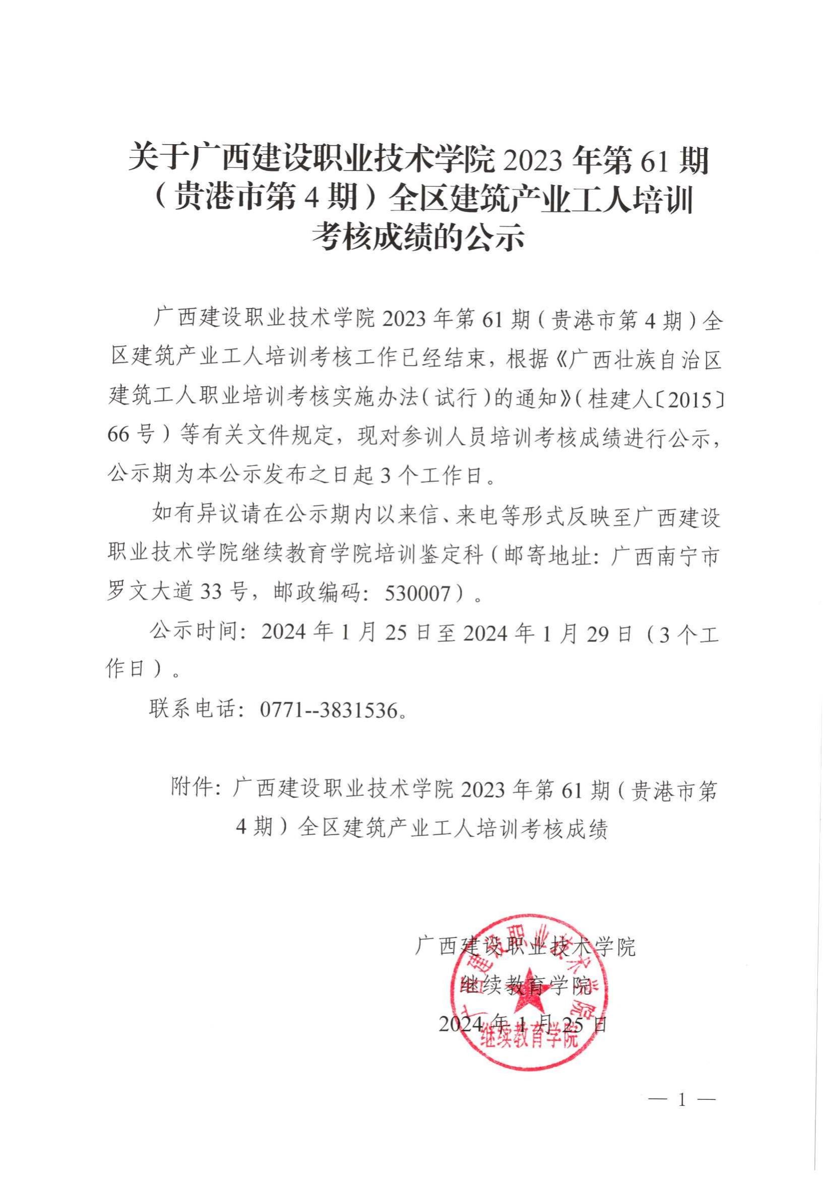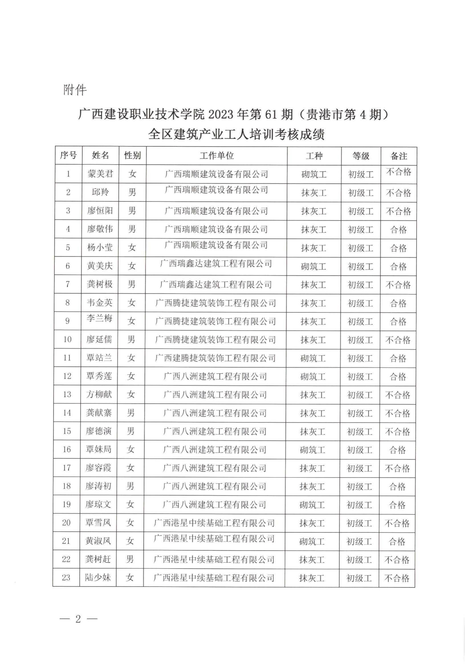 培训信息 当前位置: 首页 >> 培训信息 >> 正文 关于星空·综合(xingkong)官方网站2023年全区星空·综合(xingkong)官方网站产业工人第61期(贵港市第4期)培训考核成绩的公示 发布日期:2024-01-25 点击: 附件【关于星空·综合(xingkong)官方网站2023年全区星空·综合(xingkong)官方网站产业工人第61期(贵港市第4期)培训考核成绩的公示 .pdf】已下载次