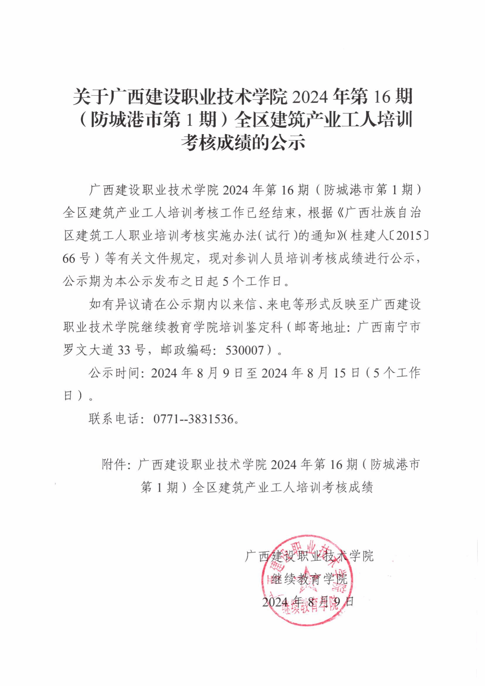 培训信息 当前位置: 首页 >> 培训信息 >> 正文 关于星空·综合(xingkong)官方网站2024年第16期(防城港市第1期)全区星空·综合(xingkong)官方网站产业工人培训考核成绩的公示 发布日期:2024-08-09 点击: 附件【关于星空·综合(xingkong)官方网站2024年第13期(南宁市第2期)全区星空·综合(xingkong)官方网站产业工人培训考核成绩的公示.pdf】已下载次