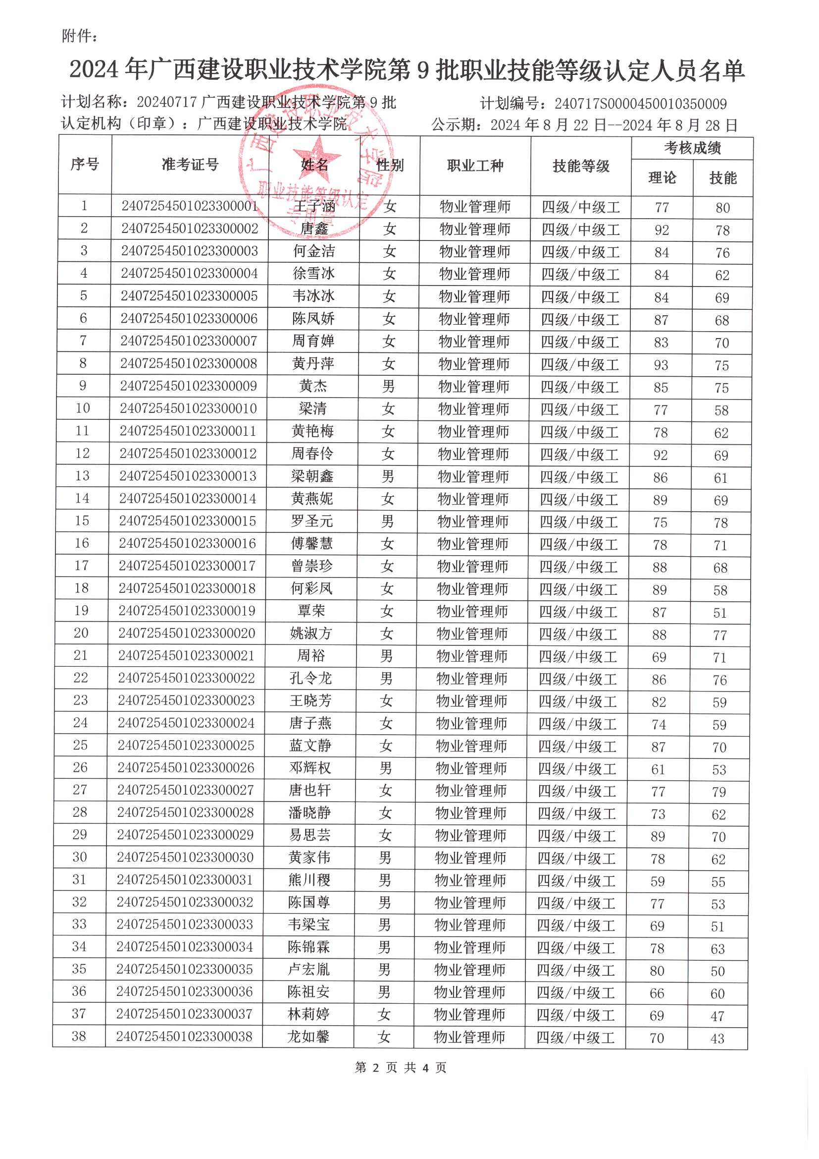 培训信息 当前位置: 首页 >> 培训信息 >> 正文 2024年星空·综合(xingkong)官方网站第9批职业技能等级认定人员成绩公示 发布日期:2024-08-22 点击: 附件【2024年星空·综合(xingkong)官方网站第9批职业技能等级认定人员成绩公示.pdf】已下载次