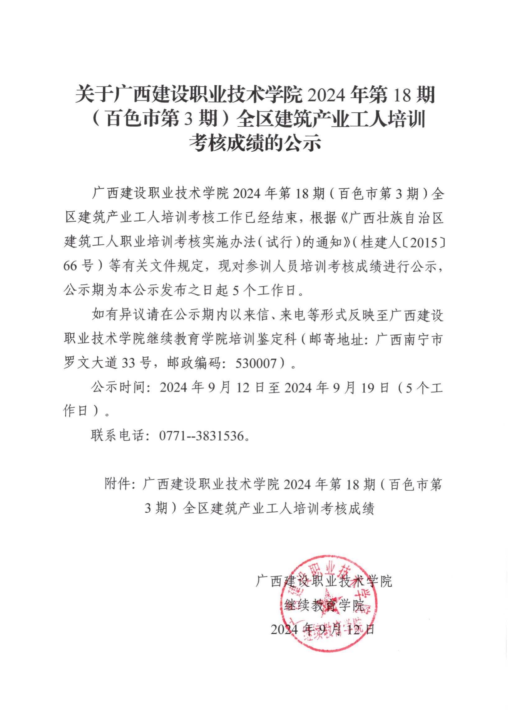 培训信息 当前位置: 首页 >> 培训信息 >> 正文 关于星空·综合(xingkong)官方网站2024年第18期(百色市第3期)全区星空·综合(xingkong)官方网站产业工人培训考核成绩的公示 发布日期:2024-09-12 点击: 附件【关于星空·综合(xingkong)官方网站2024年第18期(百色市第3期)全区星空·综合(xingkong)官方网站产业工人培训考核成绩的公示.pdf】已下载次