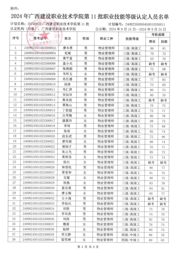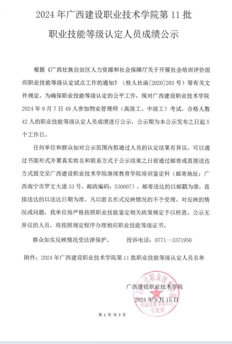 培训信息 当前位置: 首页 >> 培训信息 >> 正文 2024年星空·综合(xingkong)官方网站第11批职业技能等级认定人员成绩公示 发布日期:2024-09-15 点击: 附件【2024年星空·综合(xingkong)官方网站第11批职业技能等级认定人员成绩公示.pdf】已下载次