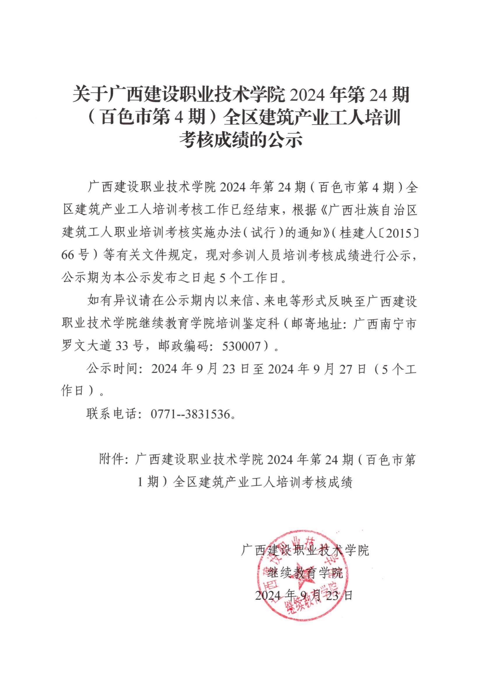 培训信息 当前位置: 首页 >> 培训信息 >> 正文 关于星空·综合(xingkong)官方网站2024年第24期(百色市第4期)全区星空·综合(xingkong)官方网站产业工人培训考核成绩的公示 发布日期:2024-09-23 点击: 附件【关于星空·综合(xingkong)官方网站2024年第24期(百色市第4期)全区星空·综合(xingkong)官方网站产业工人培训考核成绩的公示.pdf】已下载次