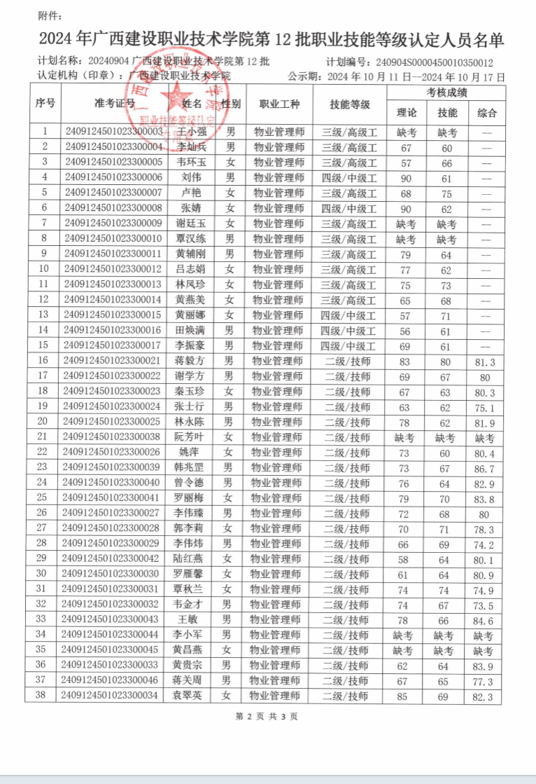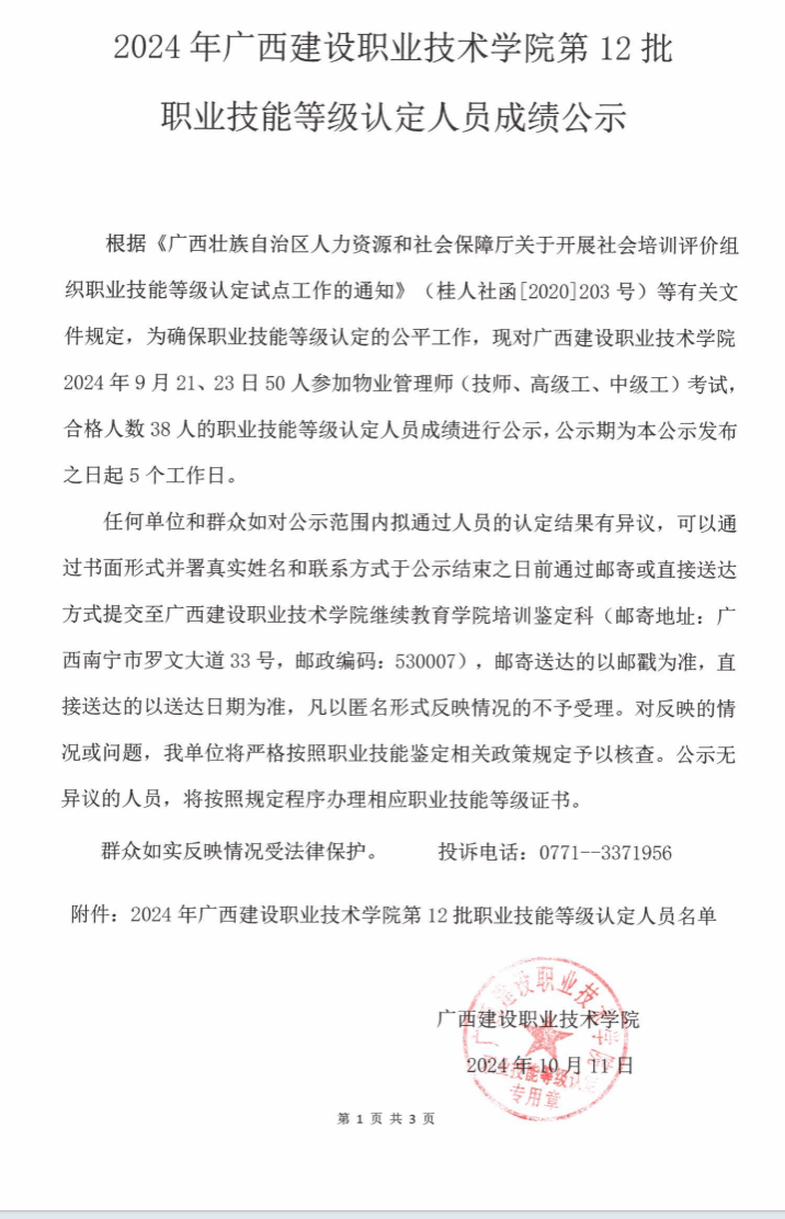 培训信息 当前位置: 首页 >> 培训信息 >> 正文 2024年星空·综合(xingkong)官方网站第12批职业技能等级认定人员成绩公示 发布日期:2024-10-11 点击: 附件【2024年星空·综合(xingkong)官方网站第12批职业技能等级认定人员成绩公示.pdf】已下载次