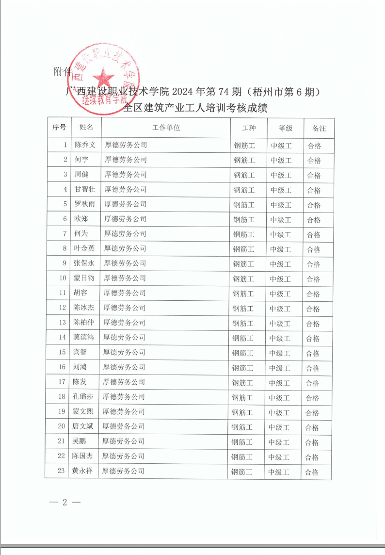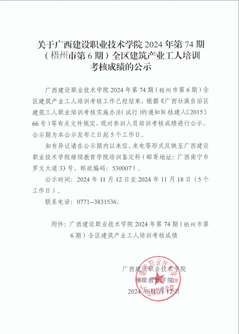 培训信息 当前位置: 首页 >> 培训信息 >> 正文 关于星空·综合(xingkong)官方网站2024年第74期(梧州市第6期)全区星空·综合(xingkong)官方网站产业工人培训考核成绩的公示 发布日期:2024-11-12 点击: 附件【关于星空·综合(xingkong)官方网站2024年第74期(梧州市第6期)全区星空·综合(xingkong)官方网站产业工人培训考核成绩的公示.pdf】已下载次