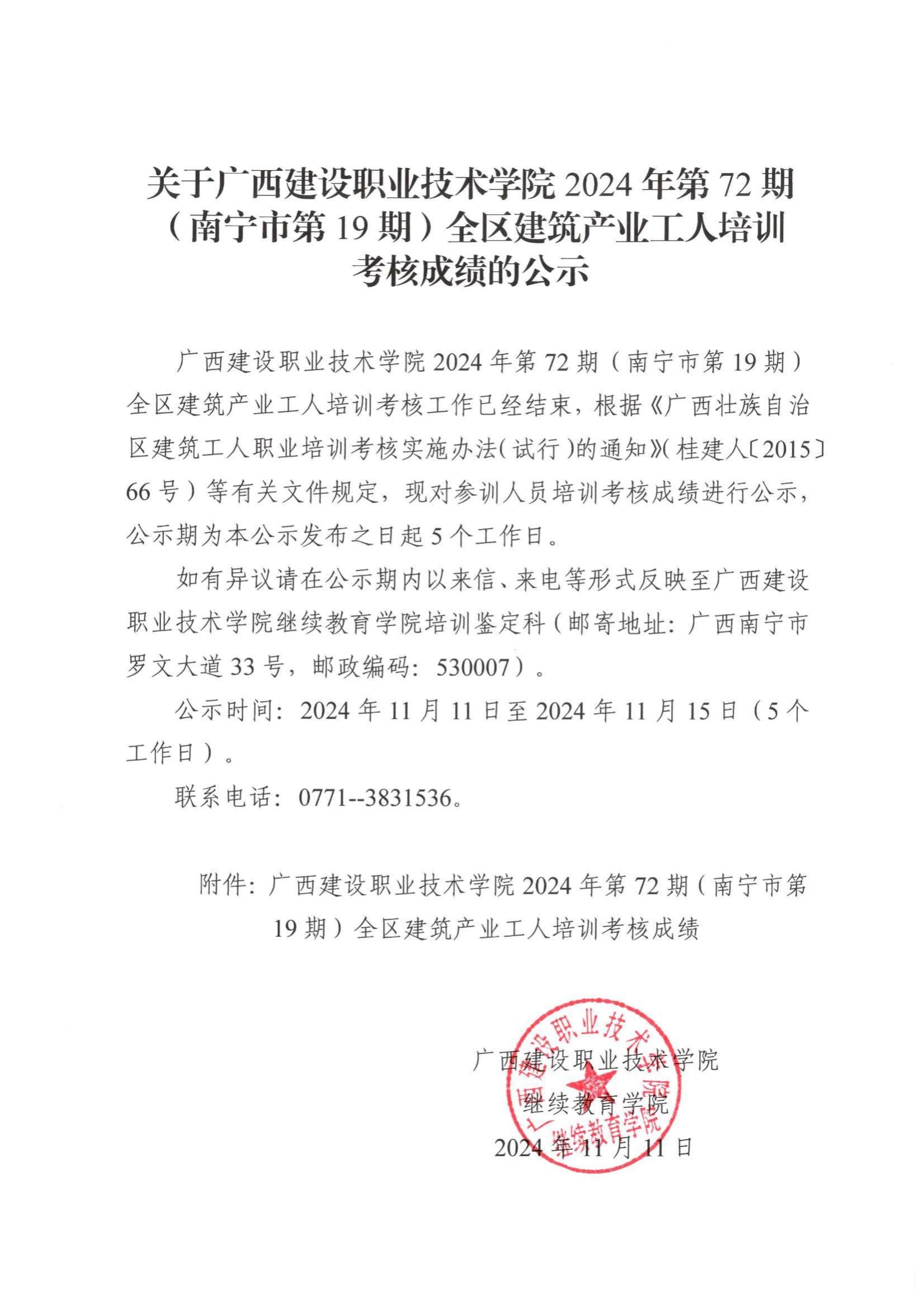 培训信息 当前位置: 首页 >> 培训信息 >> 正文 关于星空·综合(xingkong)官方网站2024年全区星空·综合(xingkong)官方网站产业工人第72期(南宁市第19期)培训考核成绩的公示 发布日期:2024-11-12 点击: 附件【关于星空·综合(xingkong)官方网站2024年全区星空·综合(xingkong)官方网站产业工人第72期(南宁市第19期)培训考核成绩的公示.pdf】已下载次