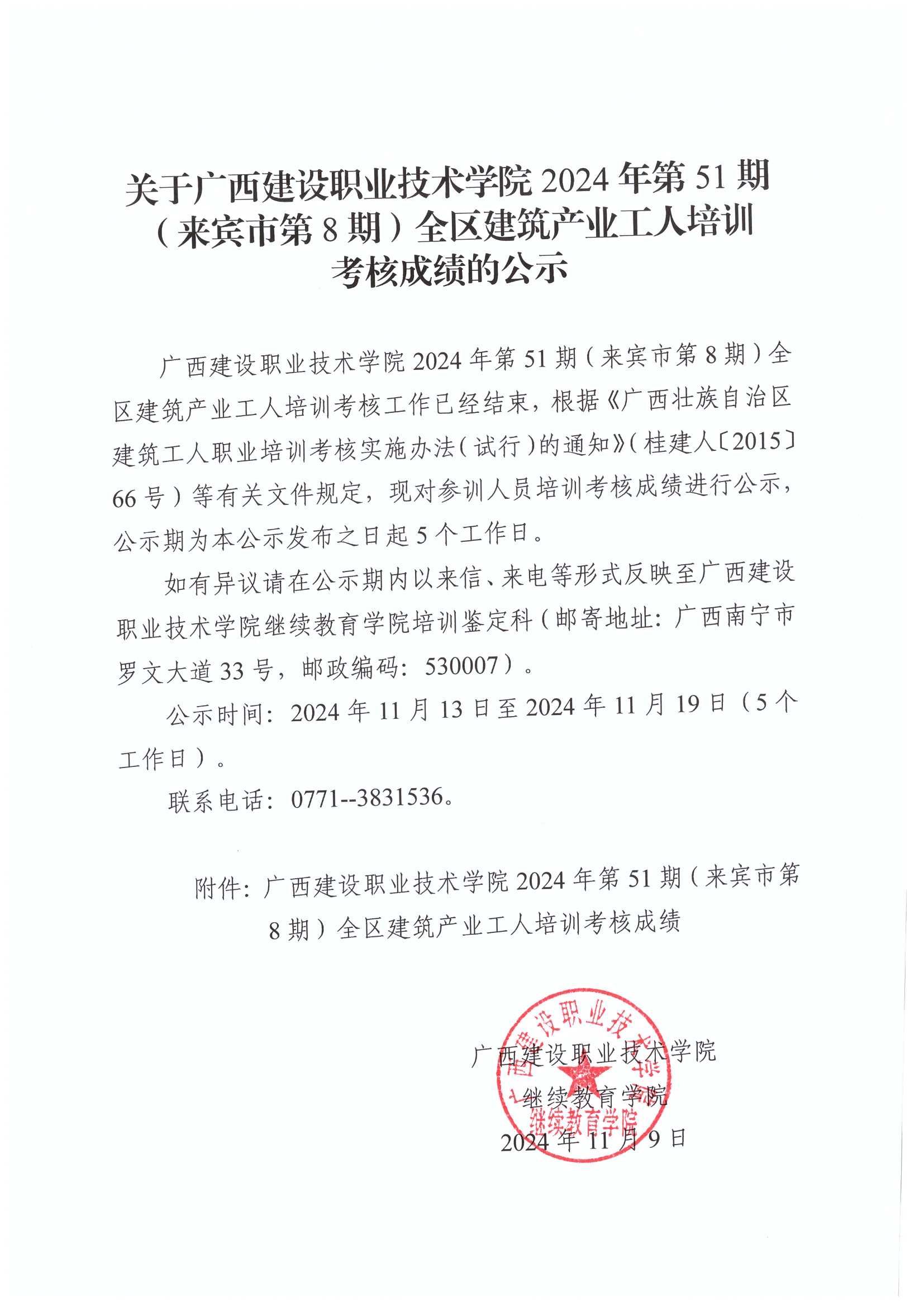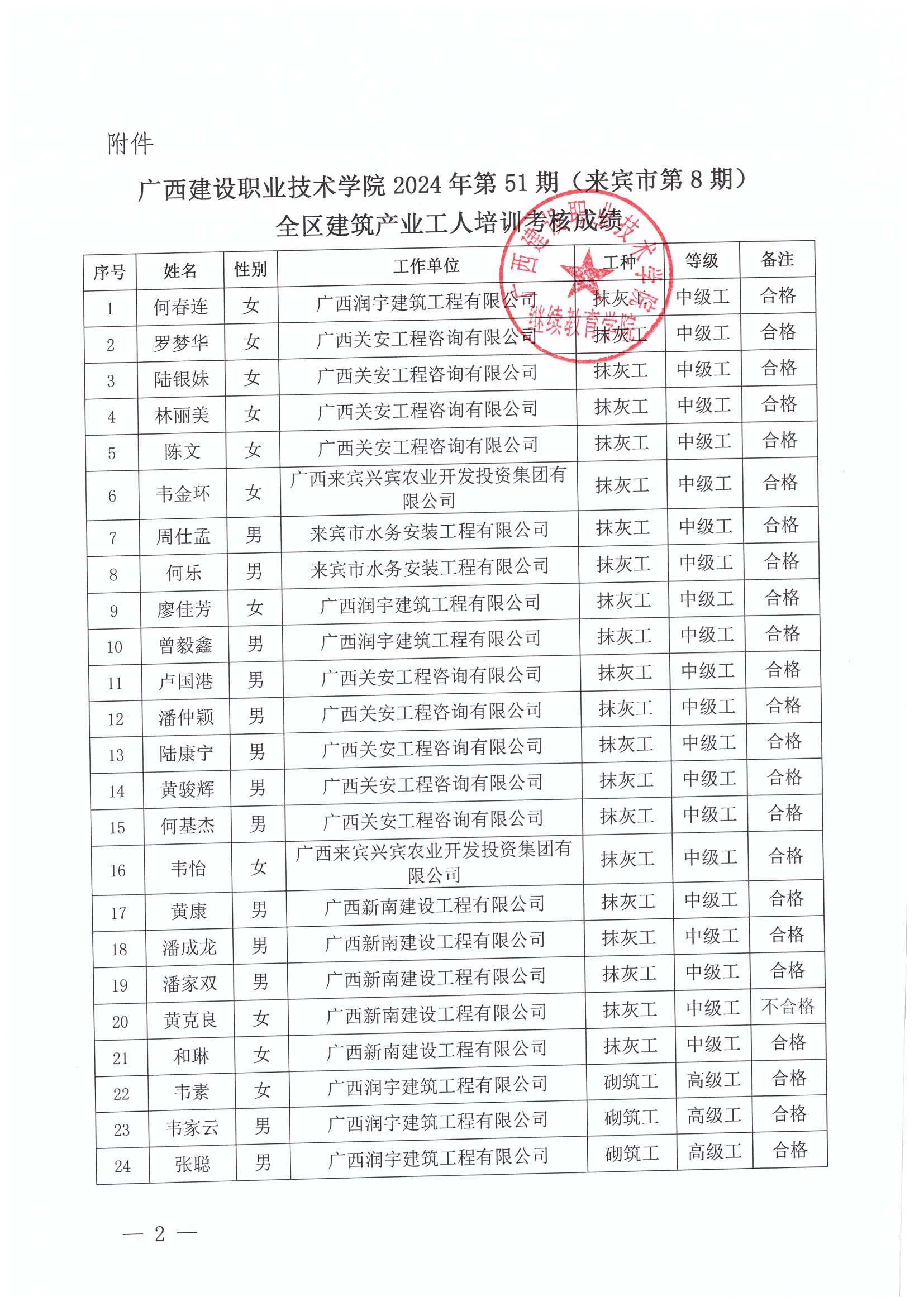 培训信息 当前位置: 首页 >> 培训信息 >> 正文 关于星空·综合(xingkong)官方网站2024年全区星空·综合(xingkong)官方网站产业工人第51期(来宾市第8期)培训考核成绩的公示 发布日期:2024-11-13 点击: 附件【关于星空·综合(xingkong)官方网站2024年全区星空·综合(xingkong)官方网站产业工人第51期(来宾市第8期)培训考核成绩的公示.pdf】已下载次