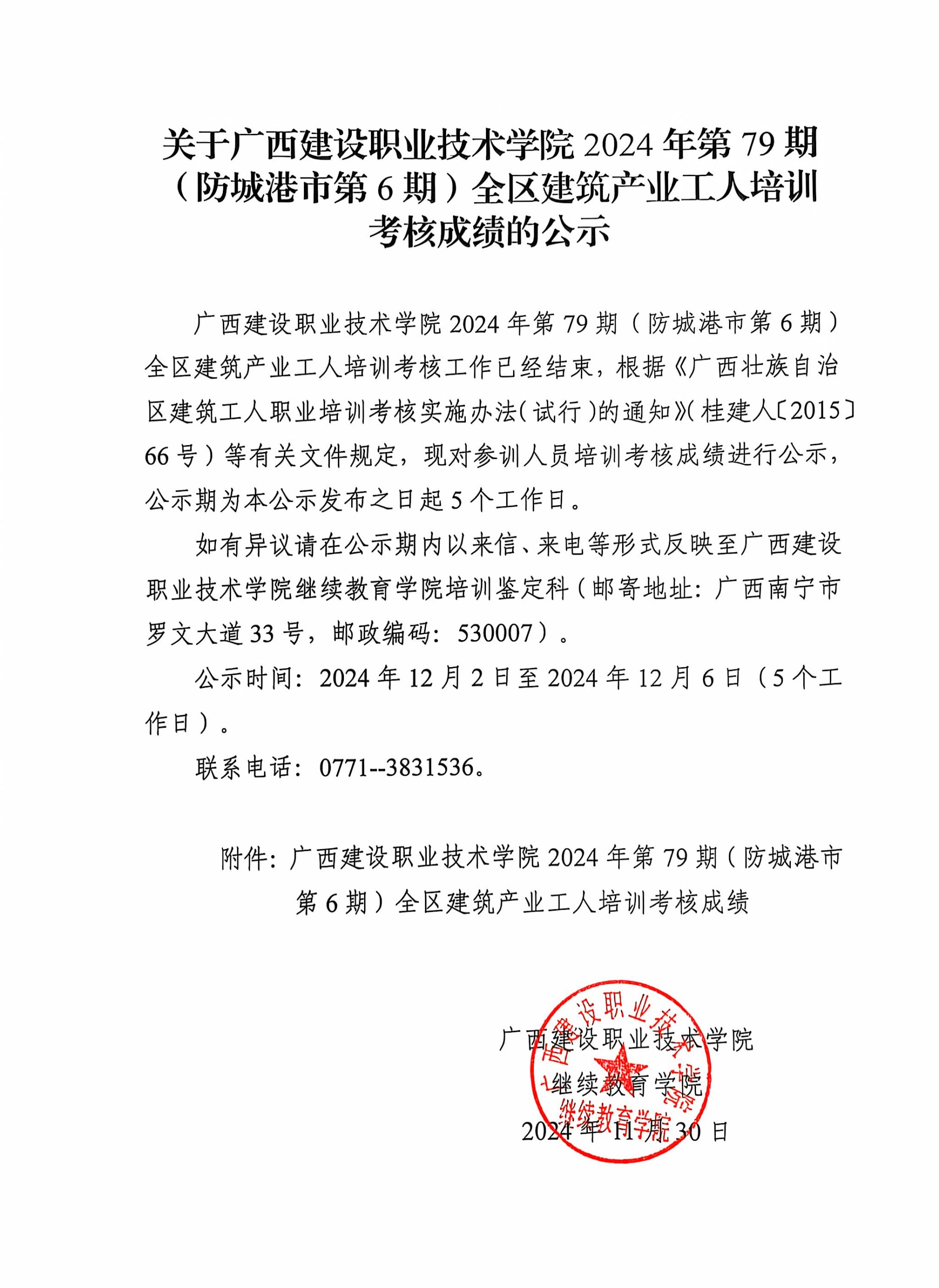 培训信息 当前位置: 首页 >> 培训信息 >> 正文 关于星空·综合(xingkong)官方网站2024年全区星空·综合(xingkong)官方网站产业工人第79期(防城港市第6期)培训考核成绩的公示 发布日期:2024-11-30 点击: 附件【关于星空·综合(xingkong)官方网站2024年全区星空·综合(xingkong)官方网站产业工人第79期(防城港市第6期)培训考核成绩的公示.pdf】已下载次