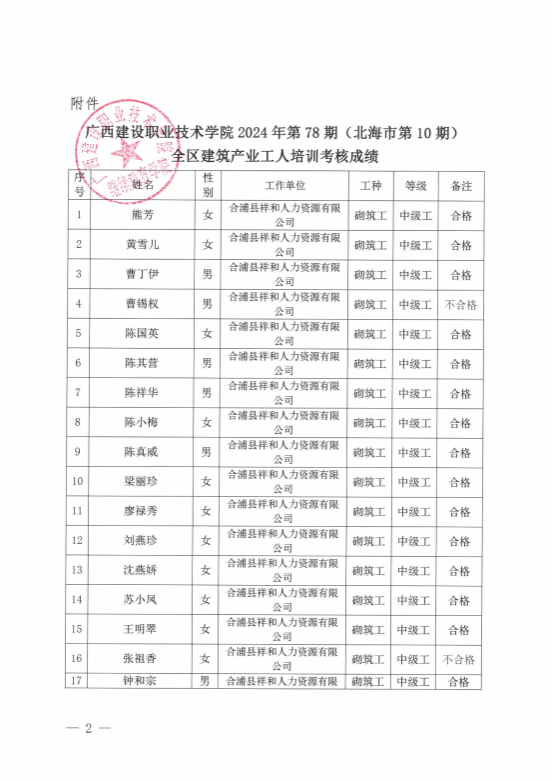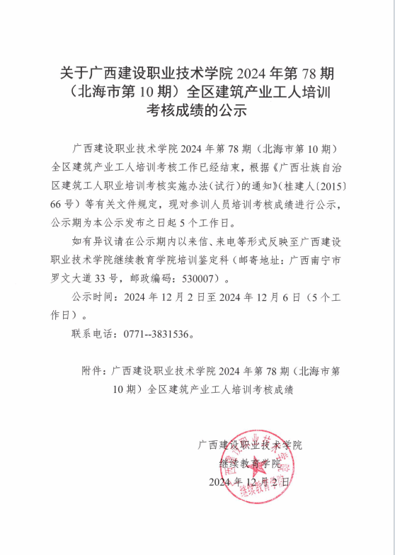 培训信息 当前位置: 首页 >> 培训信息 >> 正文 关于星空·综合(xingkong)官方网站2024年全区星空·综合(xingkong)官方网站产业工人第78期(北海市第10期)培训考核成绩的公示 发布日期:2024-12-02 点击: 附件【关于星空·综合(xingkong)官方网站2024年全区星空·综合(xingkong)官方网站产业工人第78期(北海市第10期)培训考核成绩的公示.pdf】已下载次