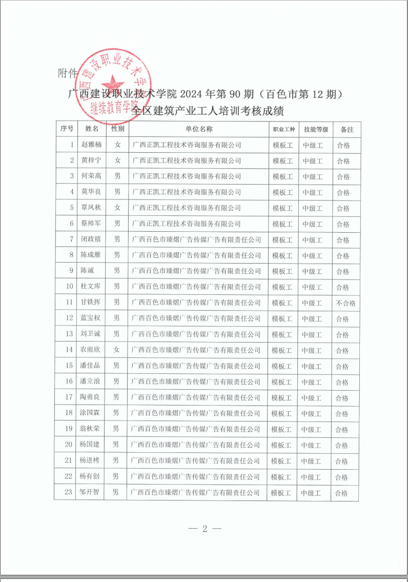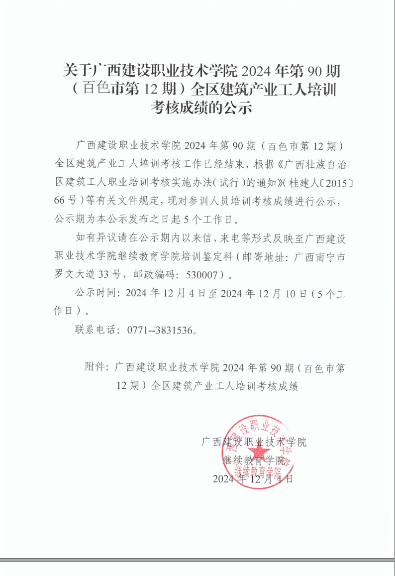 培训信息 当前位置: 首页 >> 培训信息 >> 正文 关于星空·综合(xingkong)官方网站2024年全区星空·综合(xingkong)官方网站产业工人第90期(百色市第12期)培训考核成绩的公示 发布日期:2024-12-04 点击: 附件【关于星空·综合(xingkong)官方网站2024年全区星空·综合(xingkong)官方网站产业工人第90期(百色市第12期)培训考核成绩的公示.pdf】已下载次