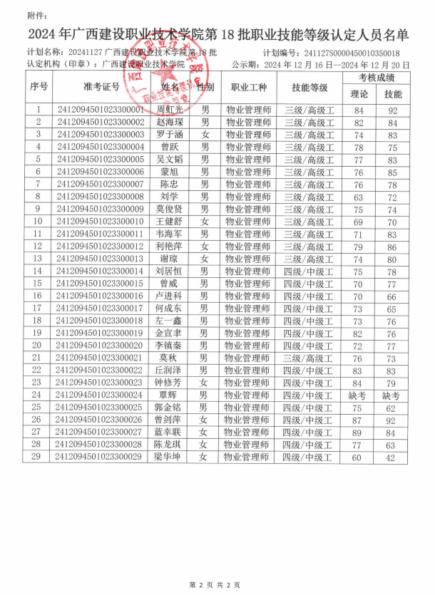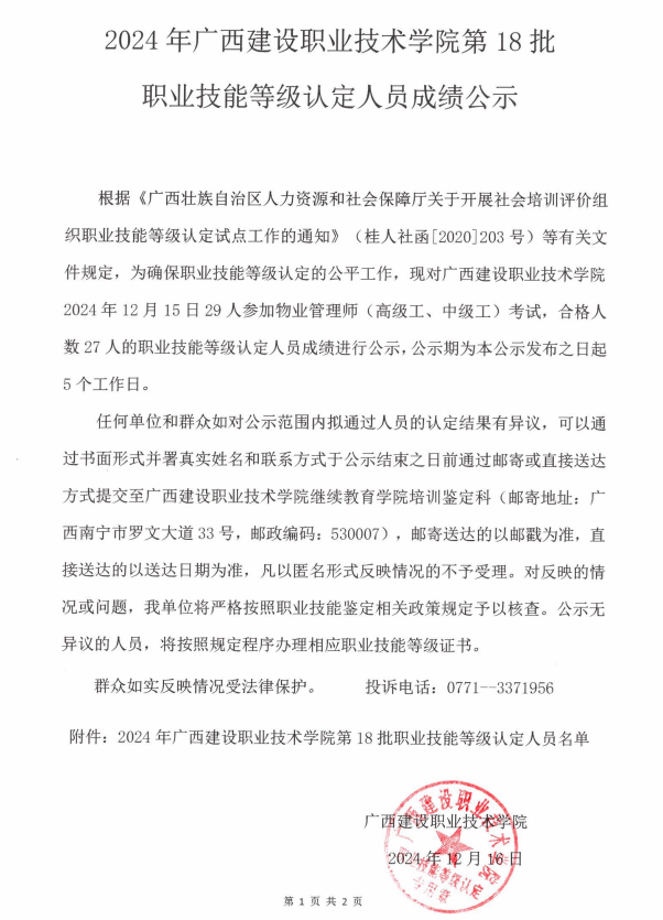 培训信息 当前位置: 首页 >> 培训信息 >> 正文 2024年星空·综合(xingkong)官方网站第18批职业技能等级认定人员成绩公示 发布日期:2024-12-18 点击: 附件【2024年星空·综合(xingkong)官方网站第18批职业技能等级认定人员成绩公示.pdf】已下载次