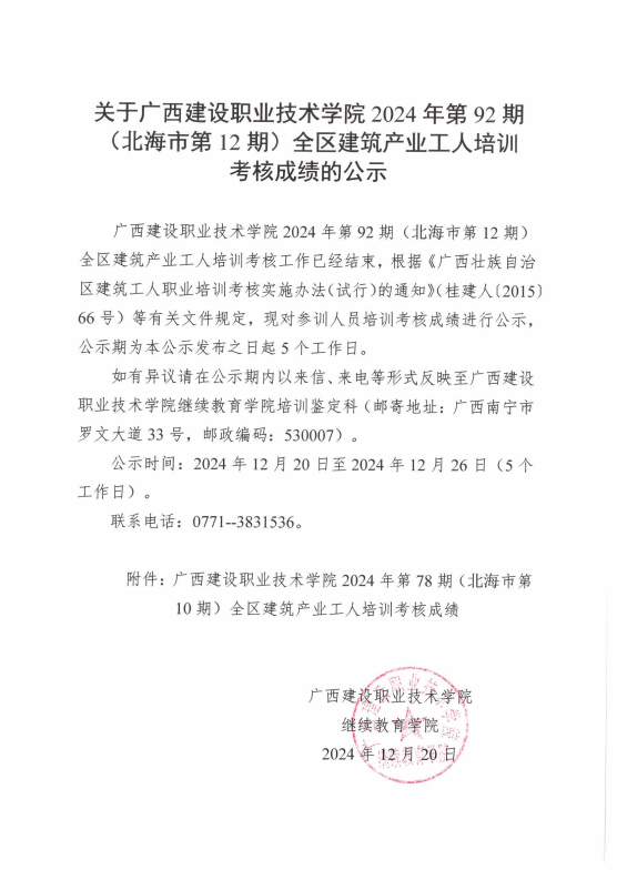 培训信息 当前位置: 首页 >> 培训信息 >> 正文 关于星空·综合(xingkong)官方网站2024年全区星空·综合(xingkong)官方网站产业工人第92期(北海市第12期)培训考核成绩的公示 发布日期:2024-12-20 点击: 附件【关于星空·综合(xingkong)官方网站2024年全区星空·综合(xingkong)官方网站产业工人第92期(北海市第12期)培训考核成绩的公示.pdf】已下载次