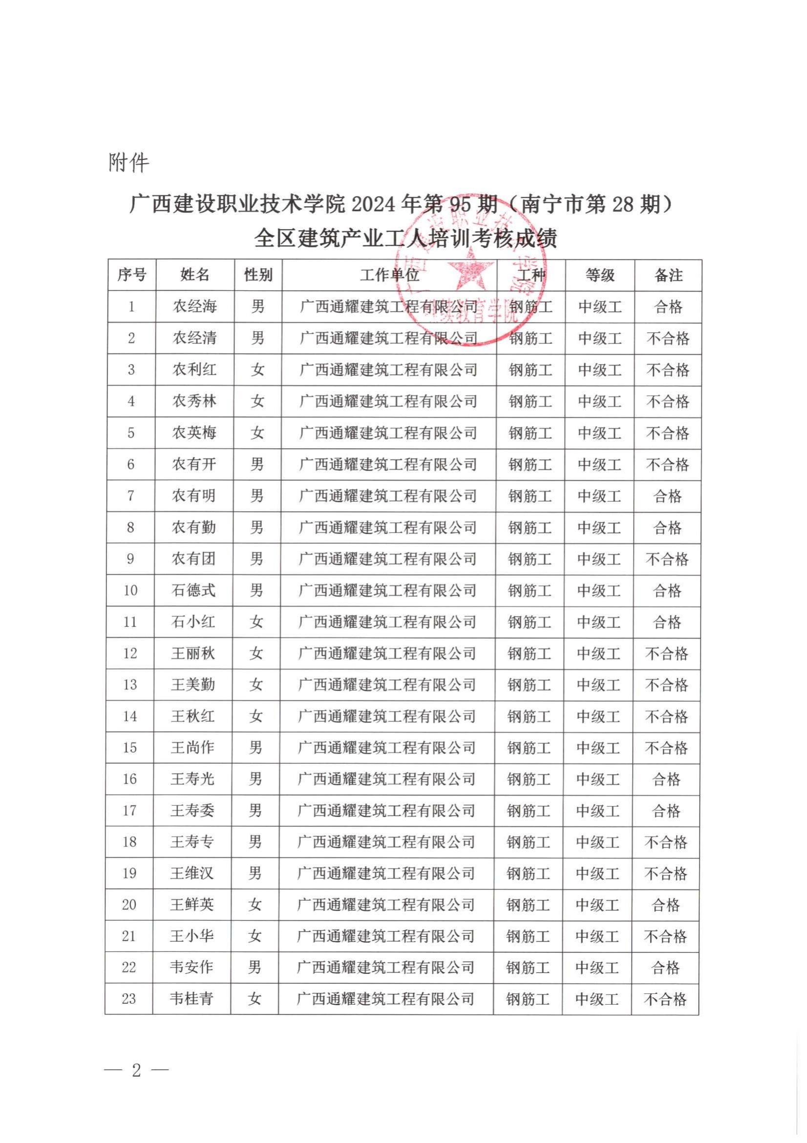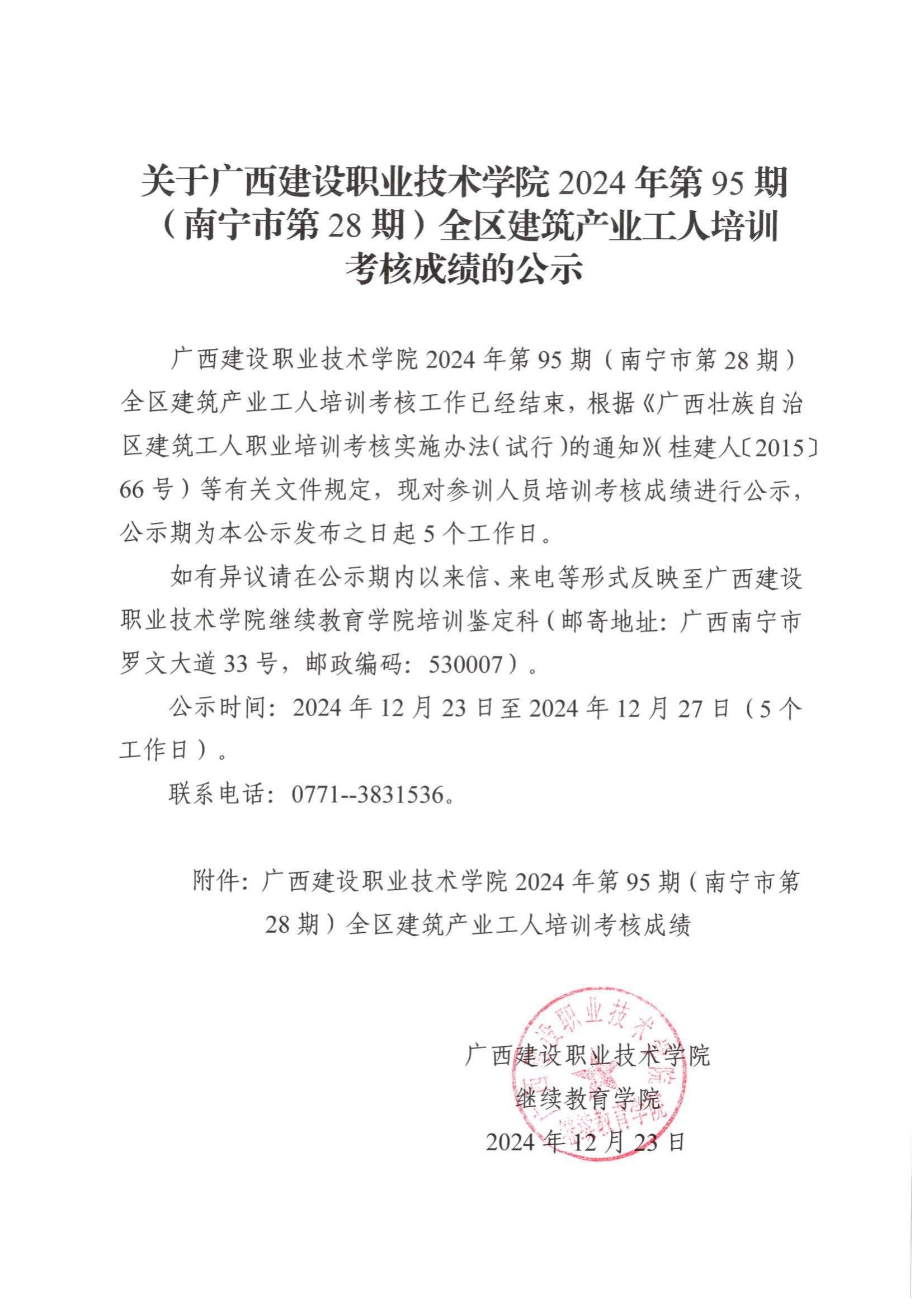 培训信息 当前位置: 首页 >> 培训信息 >> 正文 关于星空·综合(xingkong)官方网站2024年第95期(南宁市第28期)全区星空·综合(xingkong)官方网站产业工人培训考核成绩的公示 发布日期:2024-12-24 点击: 附件【关于星空·综合(xingkong)官方网站2024年第95期(南宁市第28期)全区星空·综合(xingkong)官方网站产业工人培训考核成绩的公示.pdf】已下载次