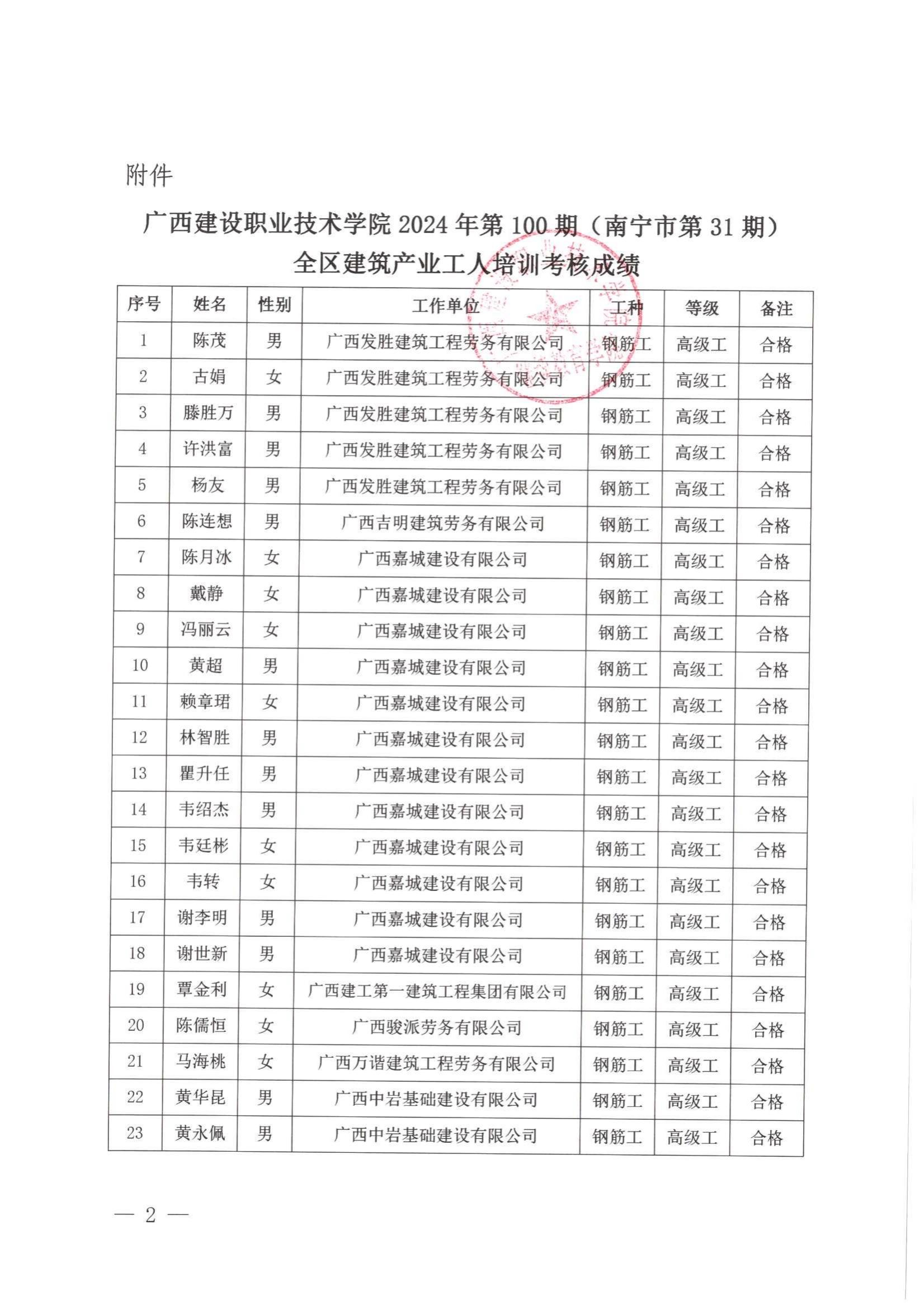 培训信息 当前位置: 首页 >> 培训信息 >> 正文 关于星空·综合(xingkong)官方网站2024年第100期(南宁市第31期)全区星空·综合(xingkong)官方网站产业工人培训考核成绩的公示 发布日期:2024-12-24 点击: 附件【关于星空·综合(xingkong)官方网站2024年第100期(南宁市第31期)全区星空·综合(xingkong)官方网站产业工人培训考核成绩的公示.pdf】已下载次