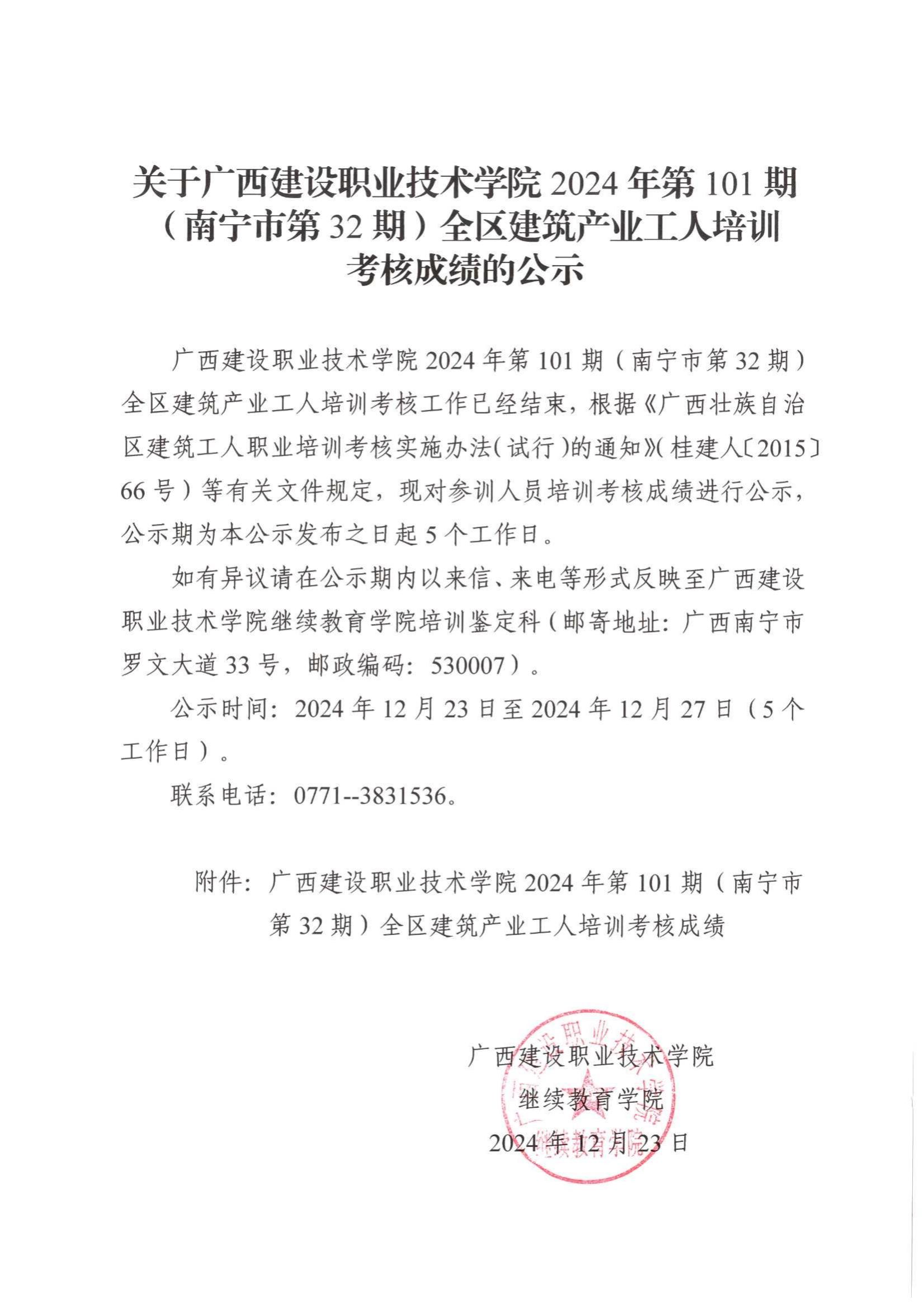 培训信息 当前位置: 首页 >> 培训信息 >> 正文 关于星空·综合(xingkong)官方网站2024年第101期(南宁市第32期)全区星空·综合(xingkong)官方网站产业工人培训考核成绩的公示 发布日期:2024-12-24 点击: 附件【关于星空·综合(xingkong)官方网站2024年第101期(南宁市第32期)全区星空·综合(xingkong)官方网站产业工人培训考核成绩的公示.pdf】已下载次