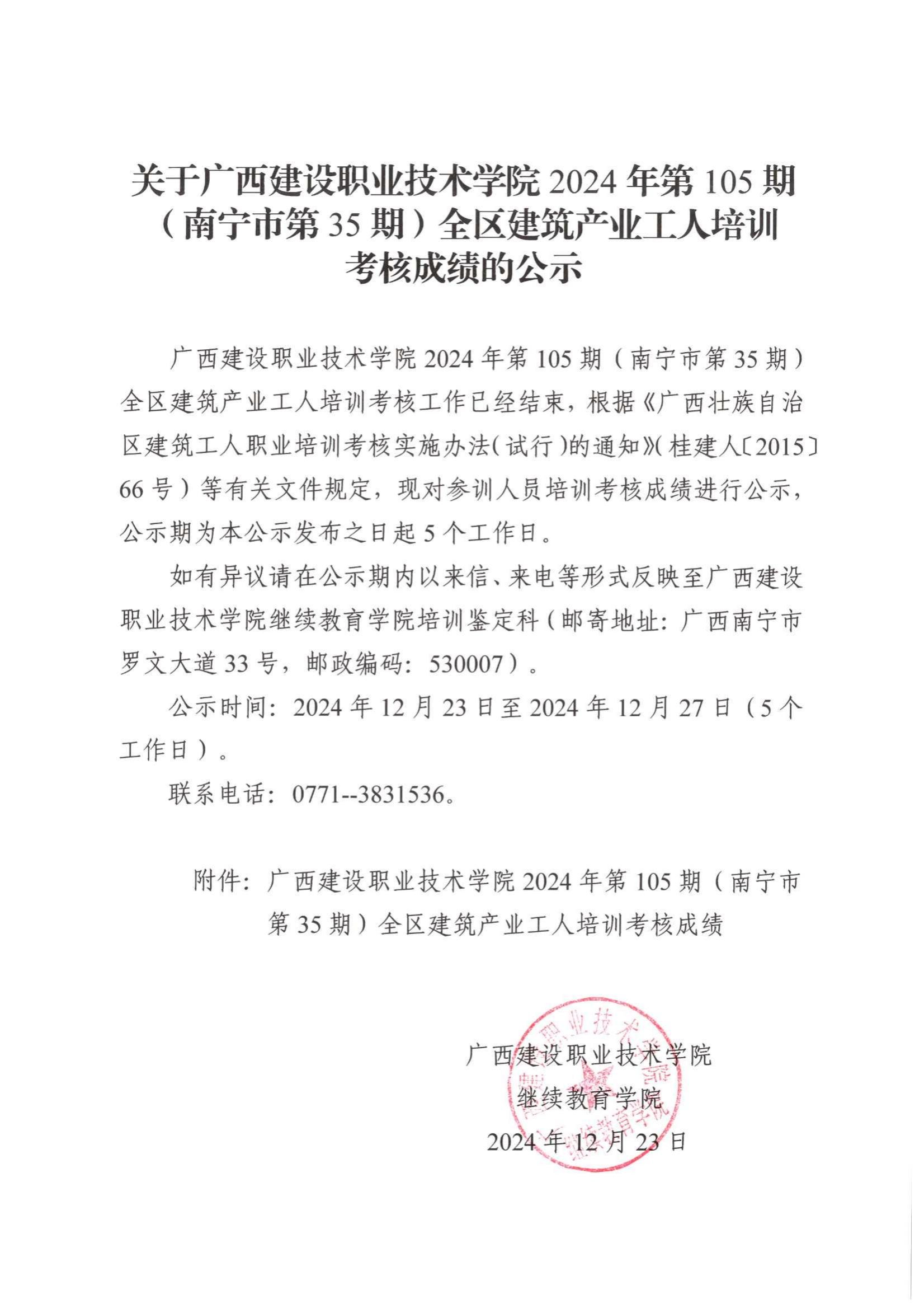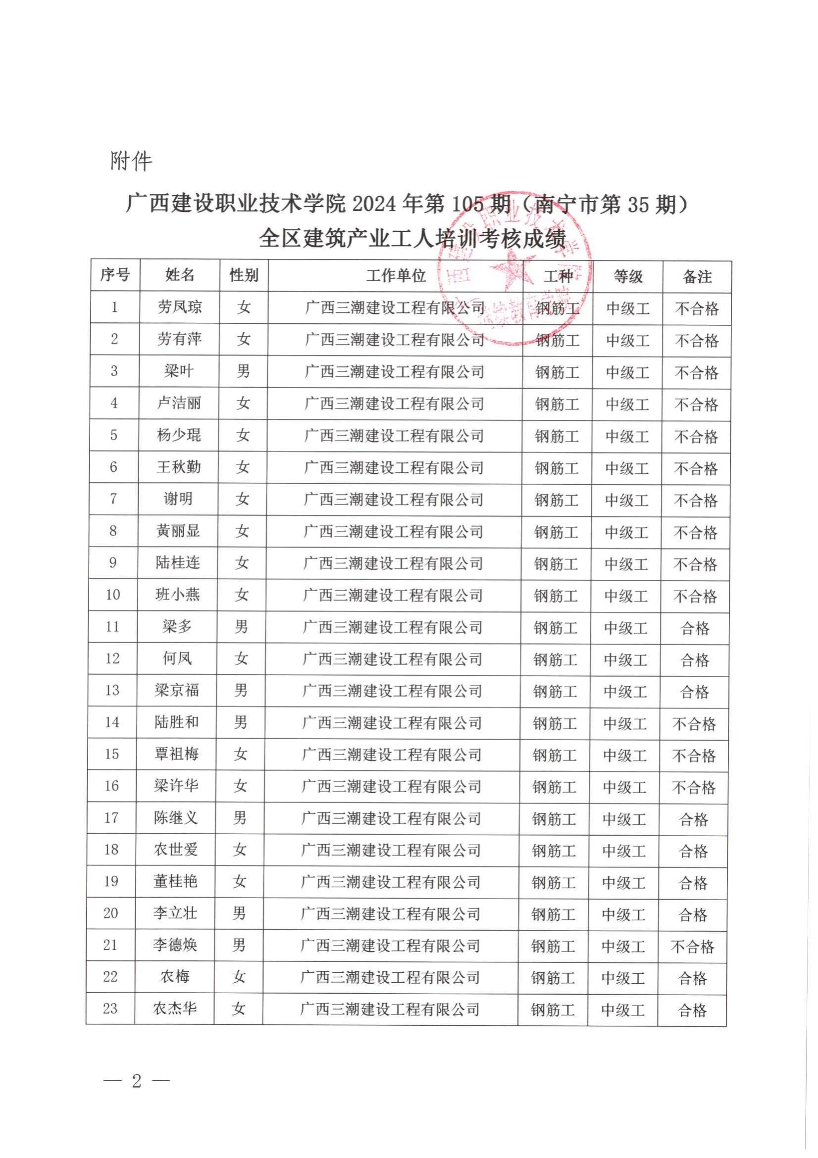 培训信息 当前位置: 首页 >> 培训信息 >> 正文 关于星空·综合(xingkong)官方网站2024年第105期(南宁市第35期)全区星空·综合(xingkong)官方网站产业工人培训考核成绩的公示 发布日期:2024-12-24 点击: 附件【关于星空·综合(xingkong)官方网站2024年第105期(南宁市第35期)全区星空·综合(xingkong)官方网站产业工人培训考核成绩的公示.pdf】已下载次