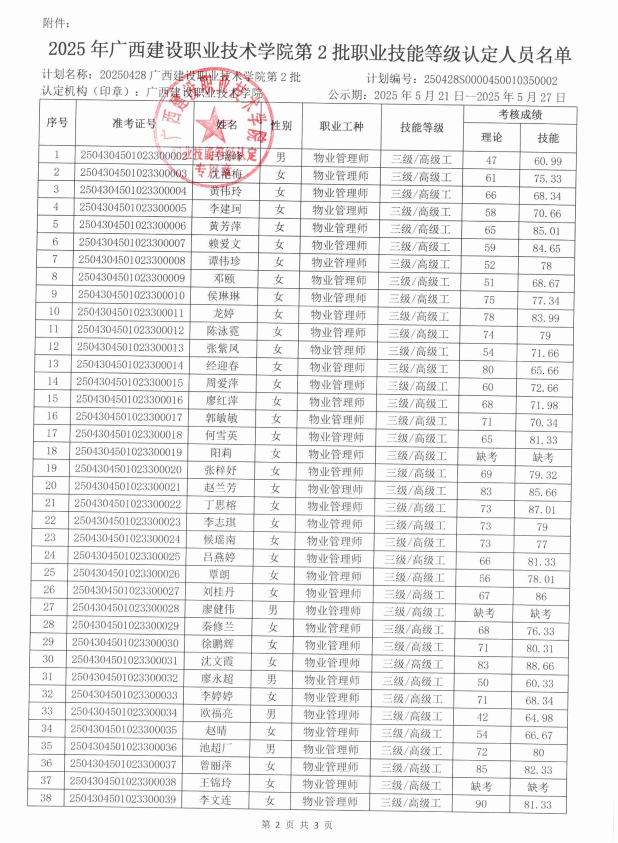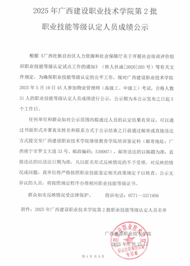 培训信息 当前位置: 首页 >> 培训信息 >> 正文 2025年星空·综合(xingkong)官方网站第2批职业技能等级认定人员成绩公示 发布日期:2025-05-21 点击: 附件【2025年星空·综合(xingkong)官方网站第2批职业技能等级认定人员成绩公示.pdf】已下载次