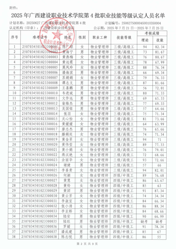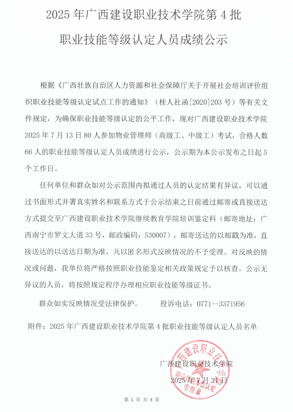 培训信息 当前位置: 首页 >> 培训信息 >> 正文 2025年星空·综合(xingkong)官方网站第4批职业技能等级认定人员成绩公示 发布日期:2025-07-21 点击: 附件【2025年星空·综合(xingkong)官方网站第4批职业技能等级认定人员成绩公示.pdf】已下载次