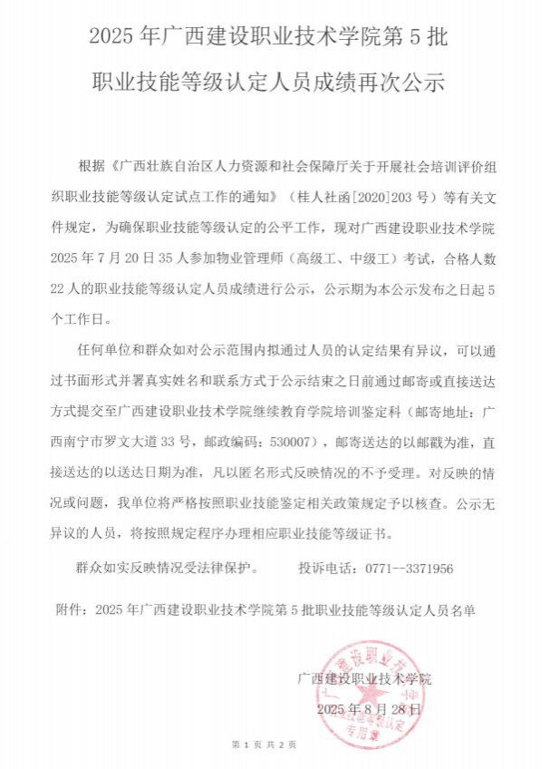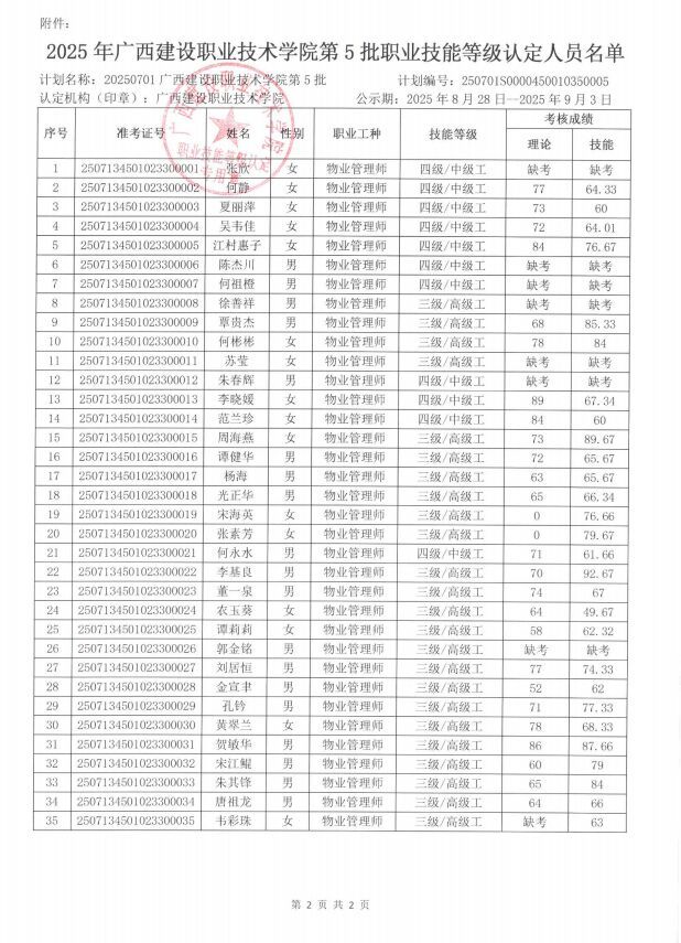 2025年星空·综合(xingkong)官方网站第5批职业技能等级认定人员成绩再次公示