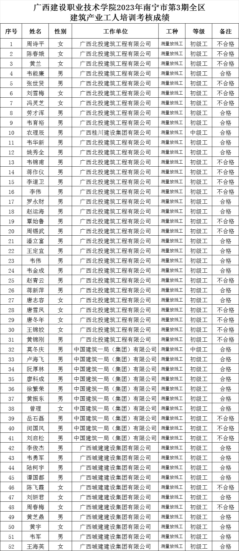 关于星空·综合(xingkong)官方网站2023年南宁市第3期全区星空·综合(xingkong)官方网站产业工人培训考核成绩的公示