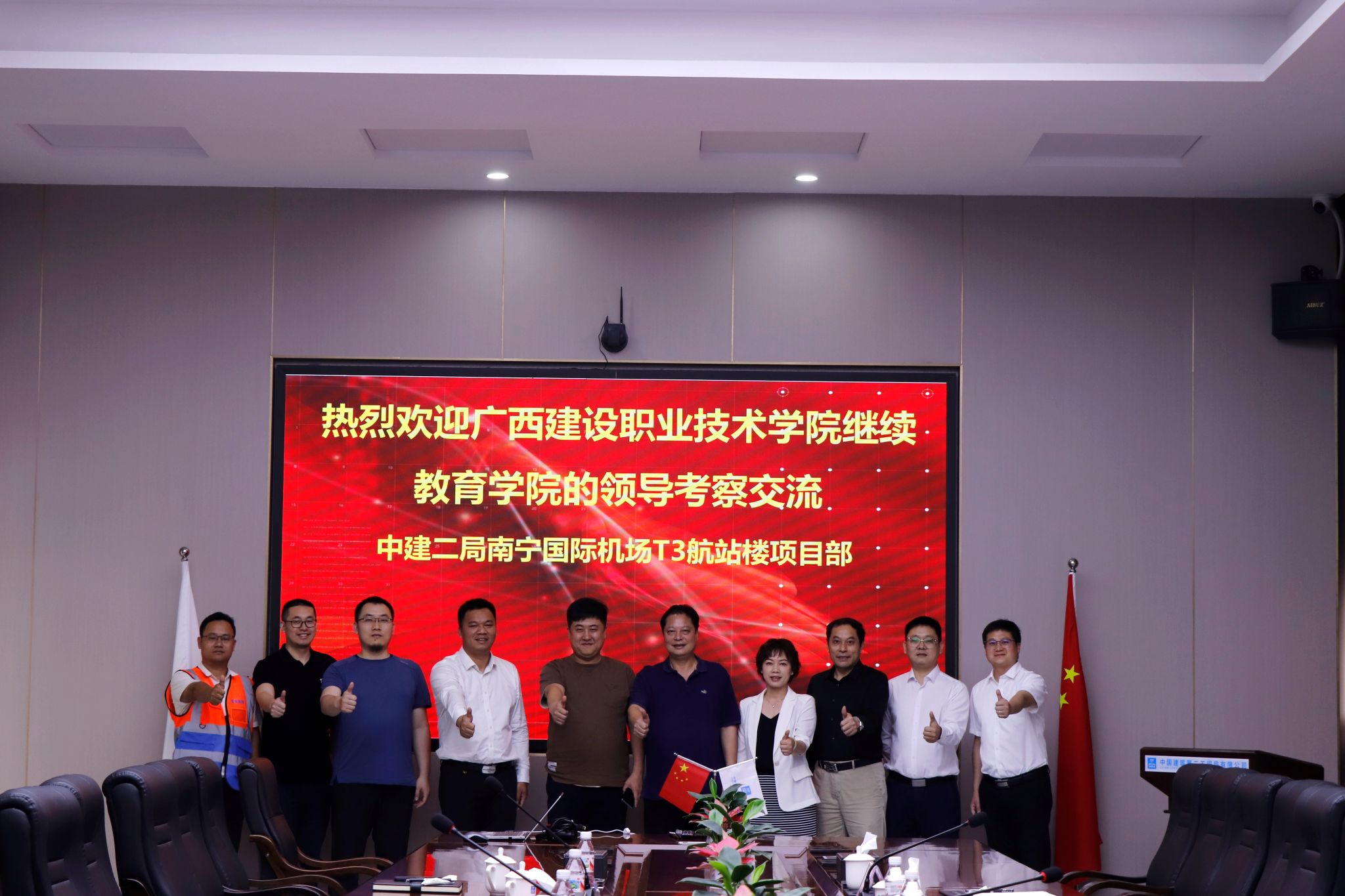 广西建院3月28日讯(继续教育学院 张艺 李莹),星空·综合(xingkong)官方网站继续教育学院院长黄永光、副院长龚剑一行3人到中建二局南宁吴圩国际机场T3航站楼项目部考察交流。