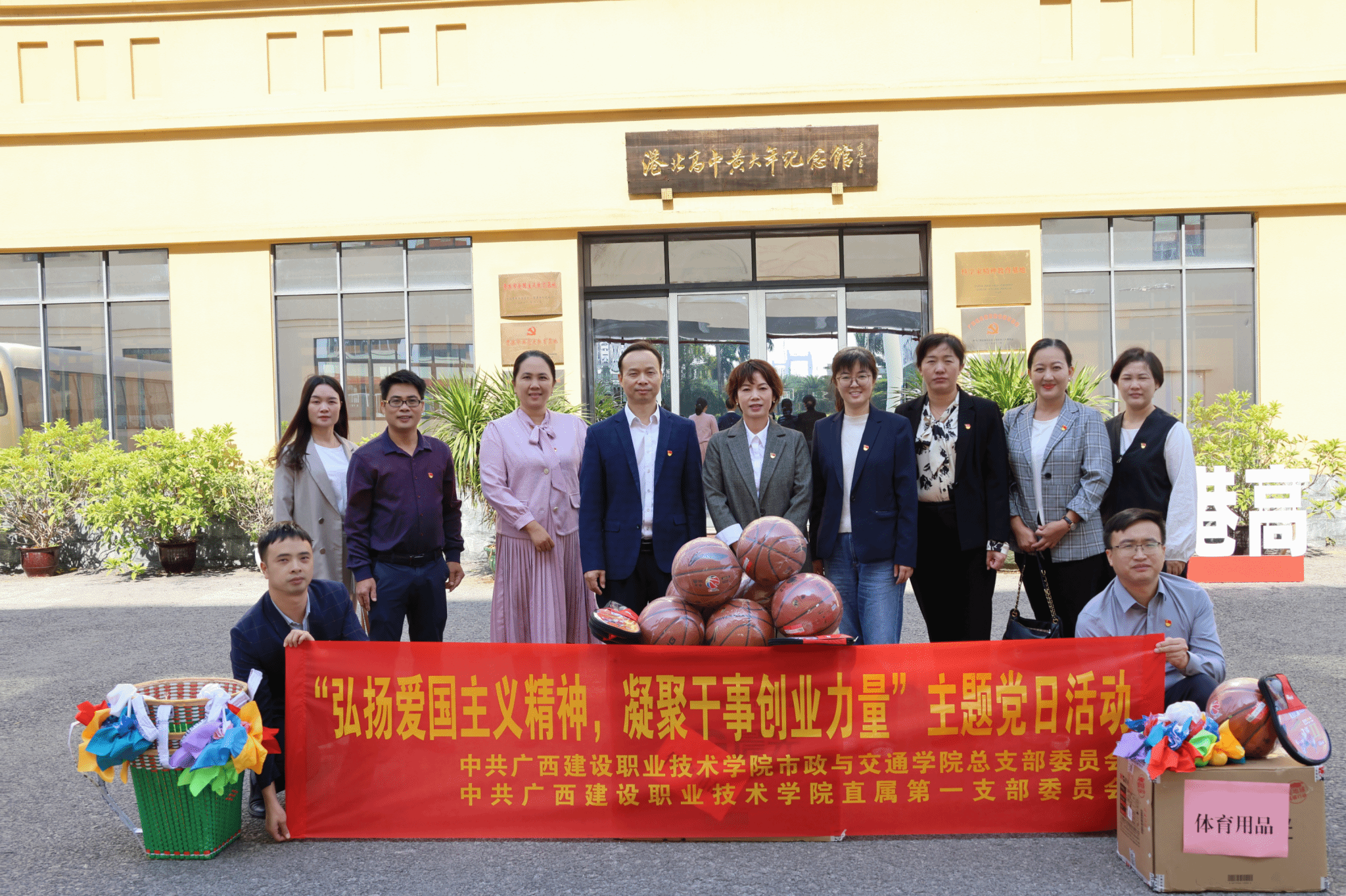 广西建院11月22日讯(继续教育学院毛娟翠)2024年11月22日,直属第一党支部副书记、继续教育学院副院长龚剑及市政与交通学院教工党支部书记、副院长靳丽莉成员代表一行7人赴黄大年的母校贵港市港北高级中学开展“弘扬爱国主义精神,凝聚干事创业力量”主题党日活动,并开展研学合作交流。