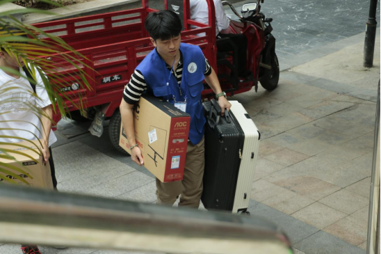 新生现场报到完成后,学生志愿者主动协助搬运行李,引导新生前往指定宿舍,一路上,志愿者们还热情地给新生们介绍着学校的基本情况。