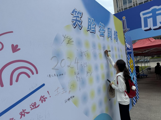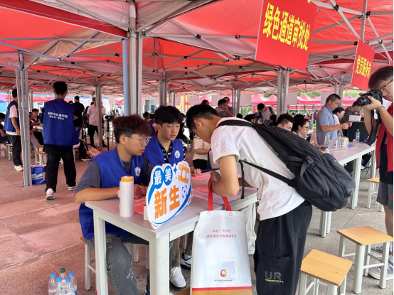 在大本营内,24级新生在老师和志愿者们井然有序的带领下的完成人脸识别、现场报到、分配宿舍、领取爱心礼包等一系列手续。为了帮助新生快速了解所学专业和学院特色,我院还设有专业解答处,由专任教师代表为新生解答专业相关方面的问题。