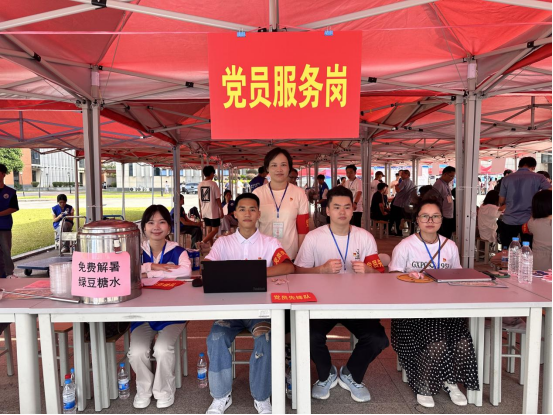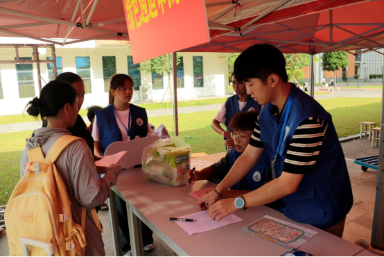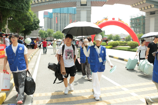 尽管天气十分闷热,也阻挡不了每一位志愿者的热情,学院在校门口设立了迎新指引点,当新生和家长一入校志愿者们便立刻微笑着迎上去,并热情帮助新生搬运行李,带领他们前往自己的学院大本营,校园内到处都是他们热情忙碌的身影。
