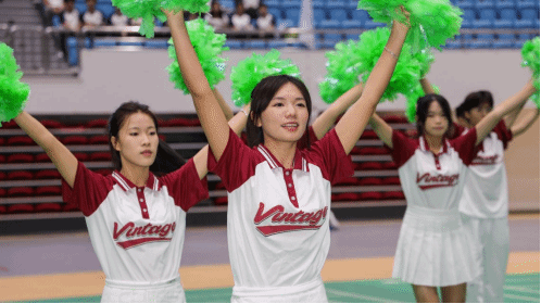整齐的队列变换更是让人眼前一亮,从简洁明快的直线排列,到富有创意的三角形、梯形组合,同学们配合默契,犹如心有灵犀一般。他们用热情点燃了现场的气氛,观众也被这充满活力的表演深深感染,欢呼声、掌声此起彼伏,回荡在整个赛场。
