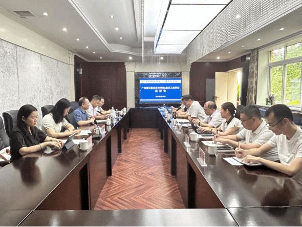 广西建院6月5日讯(市政与交通学院  林艳)为进一步加强市政工程技术国家级职业教育教师教学创新团队协作共同体建设,深化校校共同体沟通交流,不断形成“协作共进,聚力同行”的团队文化,近日,学校副校长、创新团队负责人梁伟带队赴创新团队共同体成员单位重庆工商学校拜访调研交流,市政工程技术创新团队骨干成员一行6人共同参加。重庆工商学校党委书记刘友林、副校长张容等学校领导亲切接待并就创新团队建设开展了座谈交流。
