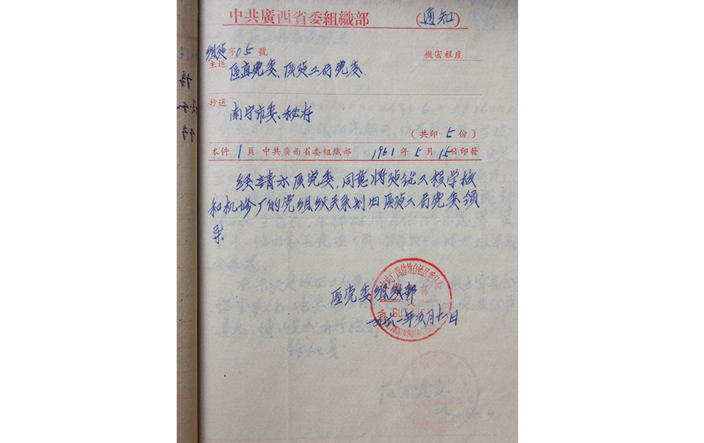 1961年学校划归区建工局党委领导的文件