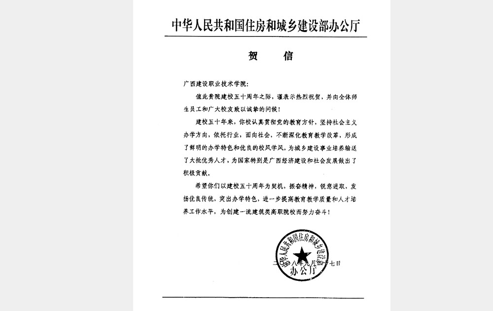 2008年建设部贺信