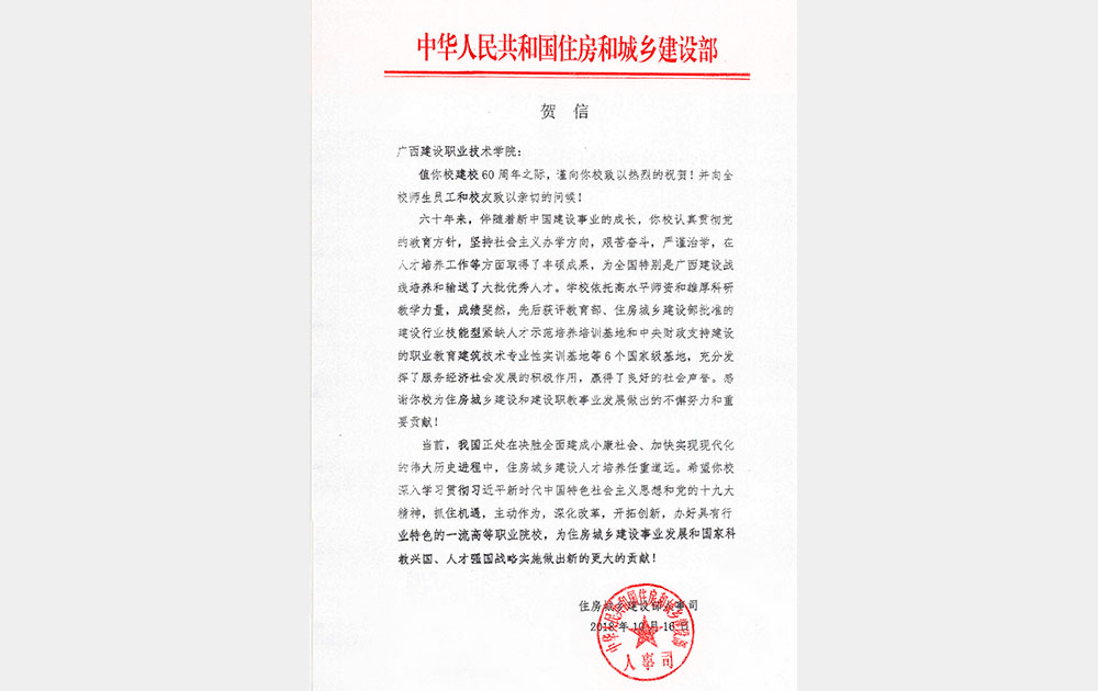 2018年住建部贺信