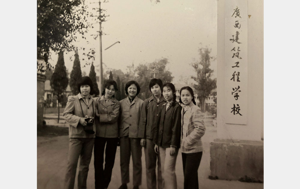 1979年工民建专业7904班女生与班主任吕烽(中)合影
