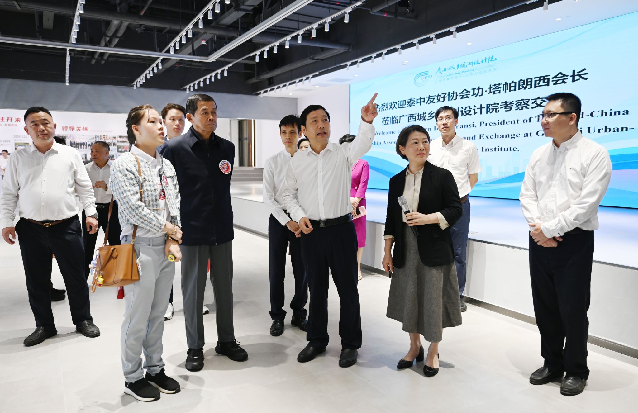 广西建院4月23日讯(广西城乡规划设计院)4月20日上午,泰中友好协会会长功·塔帕朗西一行到sports下属企业广西城乡规划设计院参观考察。自治区住房城乡建设厅党组书记、厅长杨绿峰出席座谈会,双方就加强城乡规划、星空·综合(xingkong)官方网站设计等领域的合作进行座谈。 泰中友好协会会长功·塔帕朗西(左二)和自治区住房城乡建设厅党组书记、厅长杨绿峰(左三)在该院考察功·塔帕朗西会长一行参观了广西城乡规划设计院的新办公楼,详细了解了该院的发展历程、...