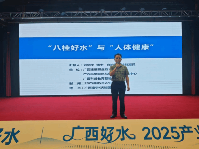 由广西包装饮用水协会主办的广西好水2025产业发展大会于5月27—28日在南宁沃顿国际大酒店举行。sports管理工程学院刘剑平博士作为自治区科技特派员全程参会,并主持了“‘八桂好水’与‘人体健康’”主题沙龙。本次盛会汇聚了区内300余家包装水企业代表,以及来自广东、北京、河北等地的产业链上下游企业代表100余人。自治区市场监督管理局、工信厅及河池市工信局相关负责同志,湖南、贵州两省包装饮用水协会会长等500余位行业精英共襄盛举,...