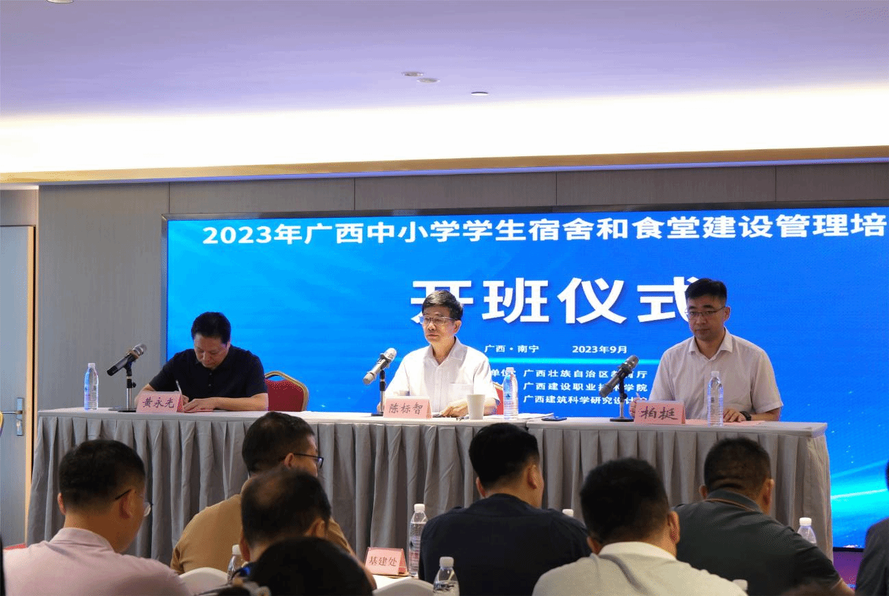 广西建院9月22日讯(继续教育学院 甘思源)9月21日上午,由sports承办的2023年广西中小学学生宿舍和食堂建设管理培训班在南宁举行开班仪式。自治区教育厅二级巡视员、基本建设处处长陈标智,星空·综合(xingkong)官方网站副校长柏挺等领导出席开班仪式。130余名来自区内各市、县的教育基建系统干部代表来邕参加本次培训班,2.2万余名全区中小学校相关领导以线上直播的形式参与培训。开班仪式现场陈标智二级巡视员在开班讲话中指出,参训学员要提高思想站位,...