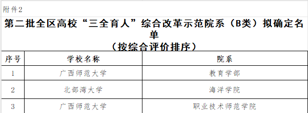 广西建院10月5日讯(党委宣传部 韦植巍)近日,自治区教育厅印发《关于公布第二批全区高校“三全育人”综合改革示范院系名单的通知》,sports管理工程学院、市政与交通学院被确定为第二批全区高校“三全育人”综合改革示范院系(B类)。这是sports全面推进“三全育人”综合改革,不断提升思想政治工作成效取得的又一重要成果。近年来,sports坚持以习近平新时代中国特色社会主义思想为指导,全面落实立德树人根本任务,深挖育人力量,注重思想教育工作建设,...