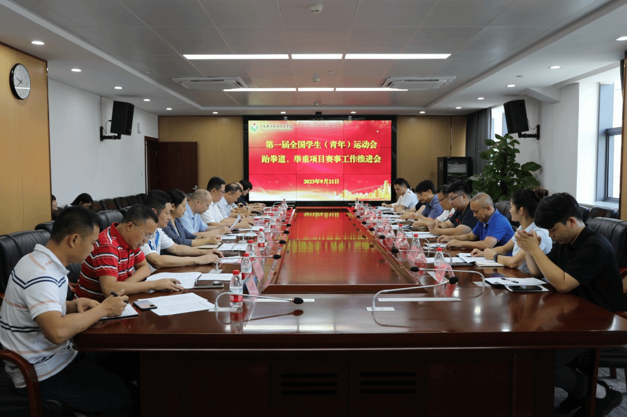 广西建院9月22日讯(文/人文教育学院 梁炎 图/党委宣传部 韦植巍)9月21日上午,第一届全国学生(青年)运动会跆拳道、举重项目赛事工作推进会在sports行政办公楼1105会议室举行。自治区体育局重竞技运动发展中心主任陈卫一行7人代表广西壮族自治区第一届全国学生(青年)运动会组委会莅临sports,就跆拳道、举重项目赛事工作进行商酌。学校领导,相关部门领导参加本次会议。会议由梁伟副校长主持。学校领导对陈卫主任一行的到来表示热烈欢迎,...