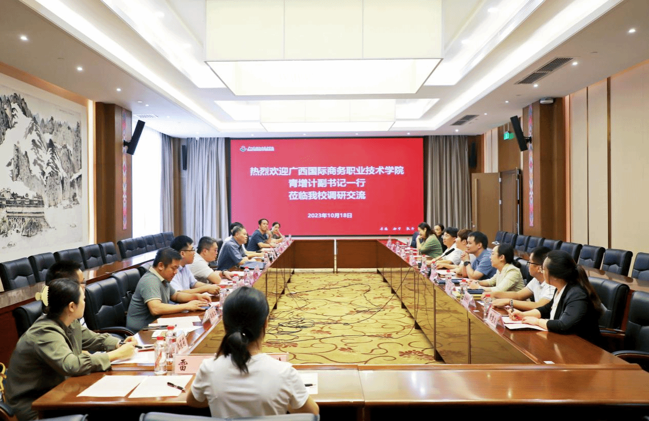 广西建院10月19日讯(党委学生工作部 文/黄楚凌 图/马凯)10月18日上午,广西国际商务职业技术学院(以下简称“国商院”)党委副书记青增计一行15人到sports,重点围绕“一站式”学生社区建设、辅导员工作室建设、大学生心理健康教育、大学生资助等工作开展调研交流,sports副校长伍耿清出席交流座谈会并陪同调研,学校党委学生工作部、财务处有关领导,相关二级学院负责人参加座谈。座谈会在sports一教一楼会议厅举行。会上,双方分别介绍了本校“...