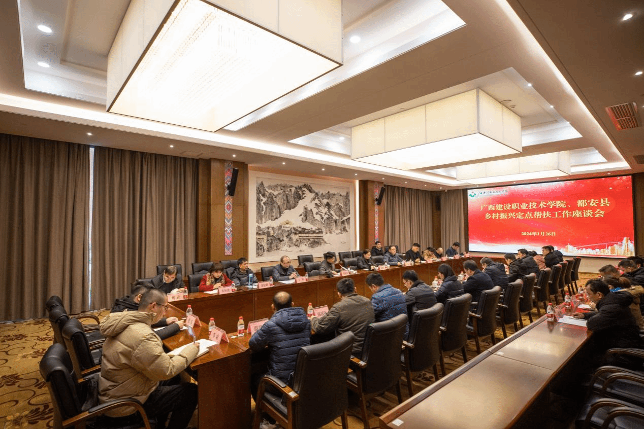 广西建院1月30日讯(党委宣传部 何丽梅)为认真贯彻落实习近平总书记关于实施乡村振兴战略的重要讲话精神,扎实推进学校定点帮扶工作,1月26日上午,星空·综合(xingkong)官方网站、都安瑶族自治县乡村振兴定点帮扶工作座谈会在学校一教一楼会议室召开。都安瑶族自治县党委常委、副县长杨向东,澄江镇、龙湾乡干部,sports派驻帮扶村第一书记共19人,与学校党委书记刘晓红,副校长伍耿清,广西城乡规划设计院党委书记肖辉利,广西星空·综合(xingkong)官方网站科学研究设计院党委办公室主任樊振北,...